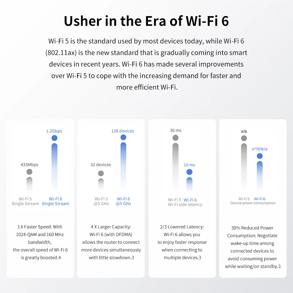 Wi-Fi Transmission Protocal802.11ax/ac/n/a 2 x 2 & 802.11ax/n/b/g 2 x 2, MU-MIMO