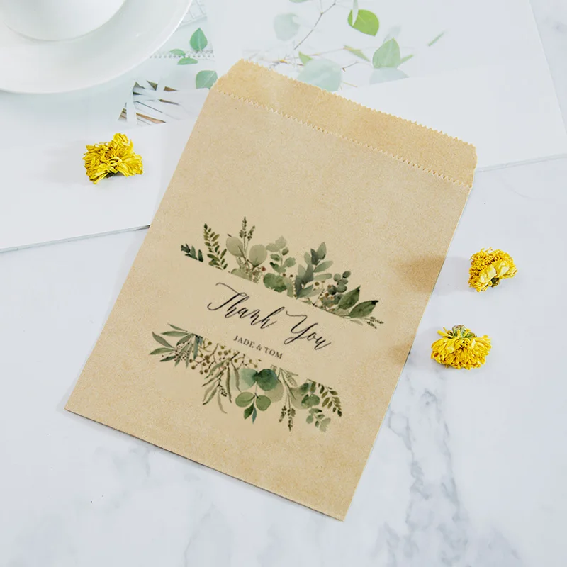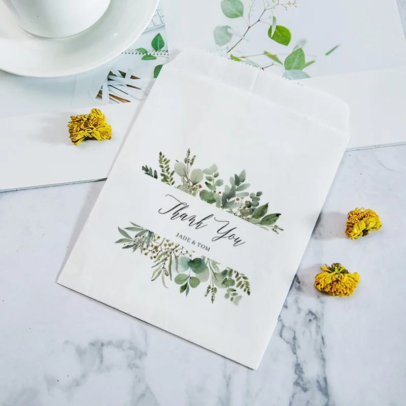 Персонализированные свадебные сумочки с листьями эвкалипта, индивидуальное имя и дата, Подарочный пакет, Белыйкрафт-бумага для печеньяконфет