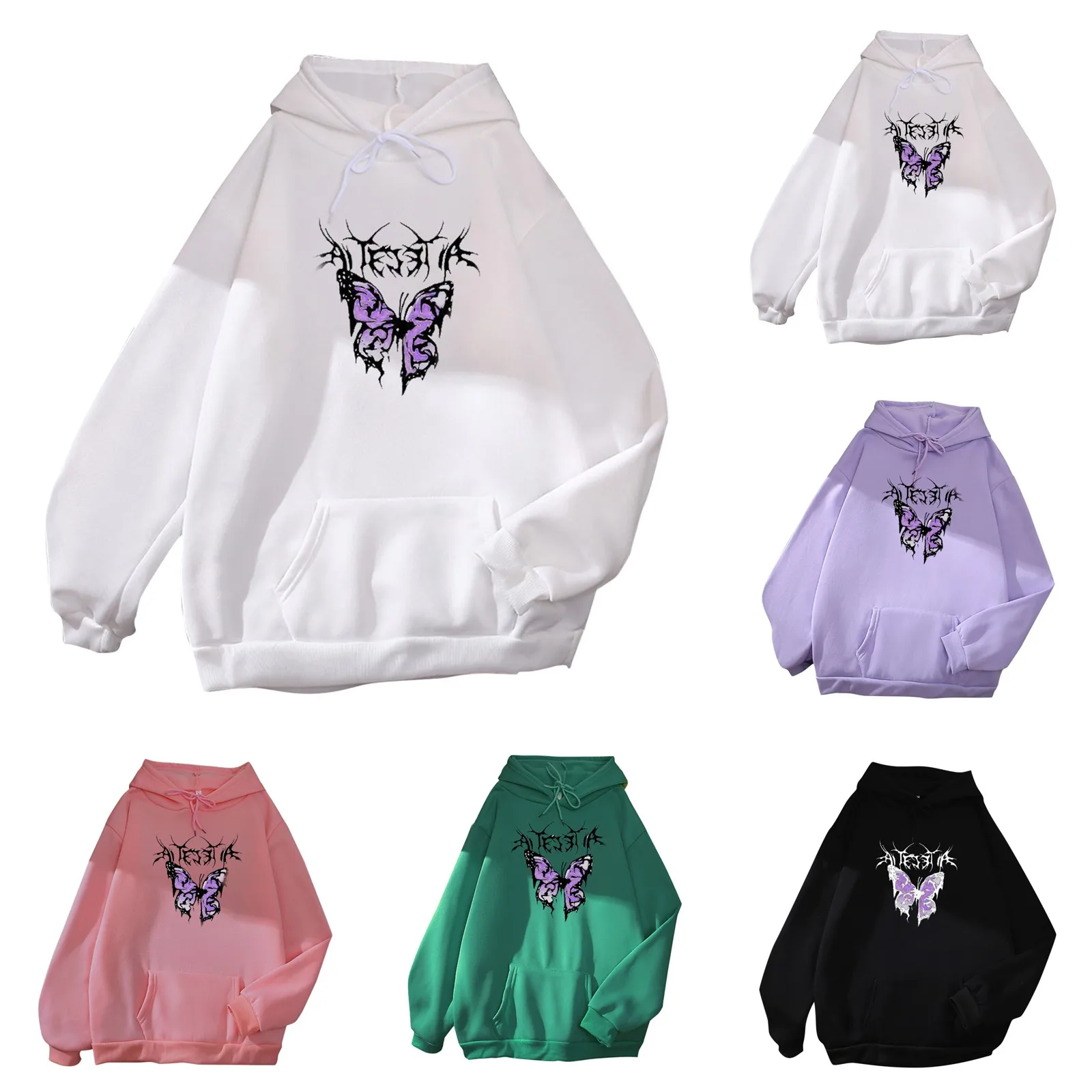 Уличный Женский пуловер с капюшоном и принтом бабочки, свободный зимний свитшот большого размера в стиле Харадзюку, женская уличная одежда