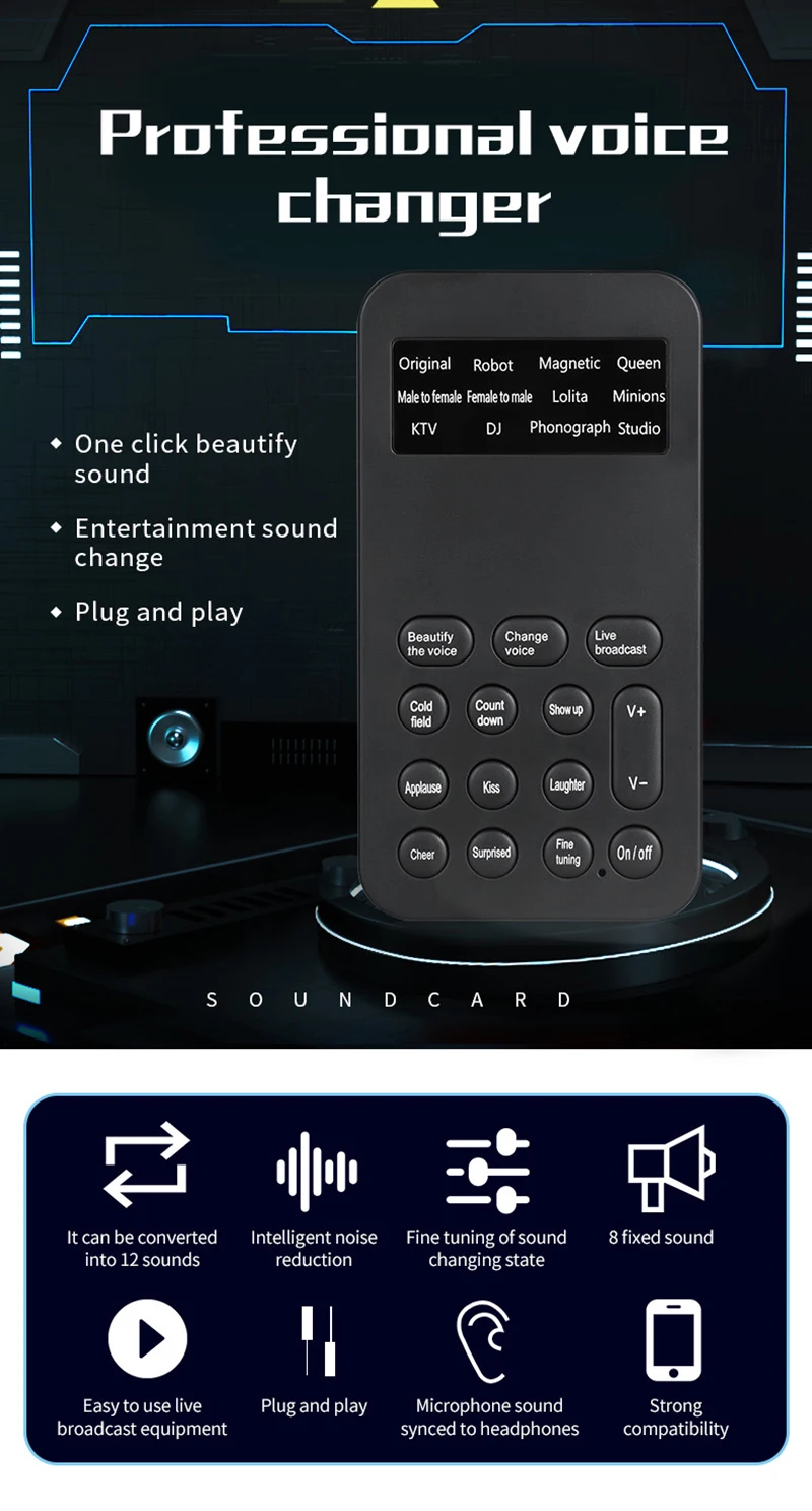 Новый преобразователь голоса, портативный мини-модулятор с 12 голосовыми изменениями, с регулируемыми голосовыми функциями, для телефона, компьютера, звуковая карта, микрофон, инструмент