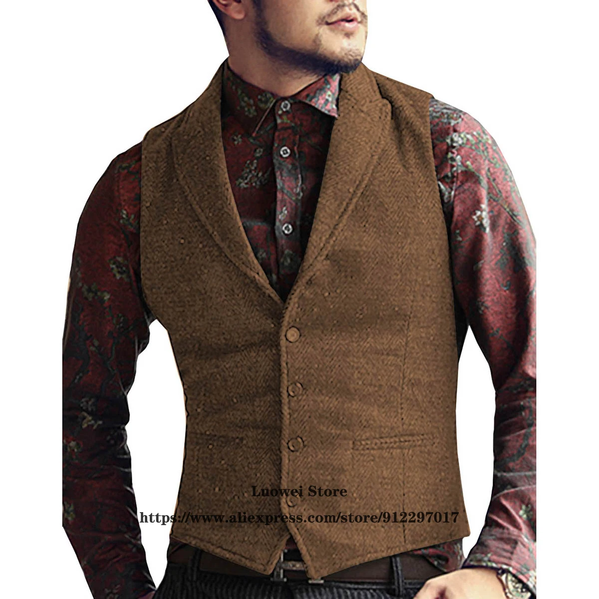 Мужской шерстяной жилет в елочку, Приталенный жилет для жениха, Официальный деловой жилет