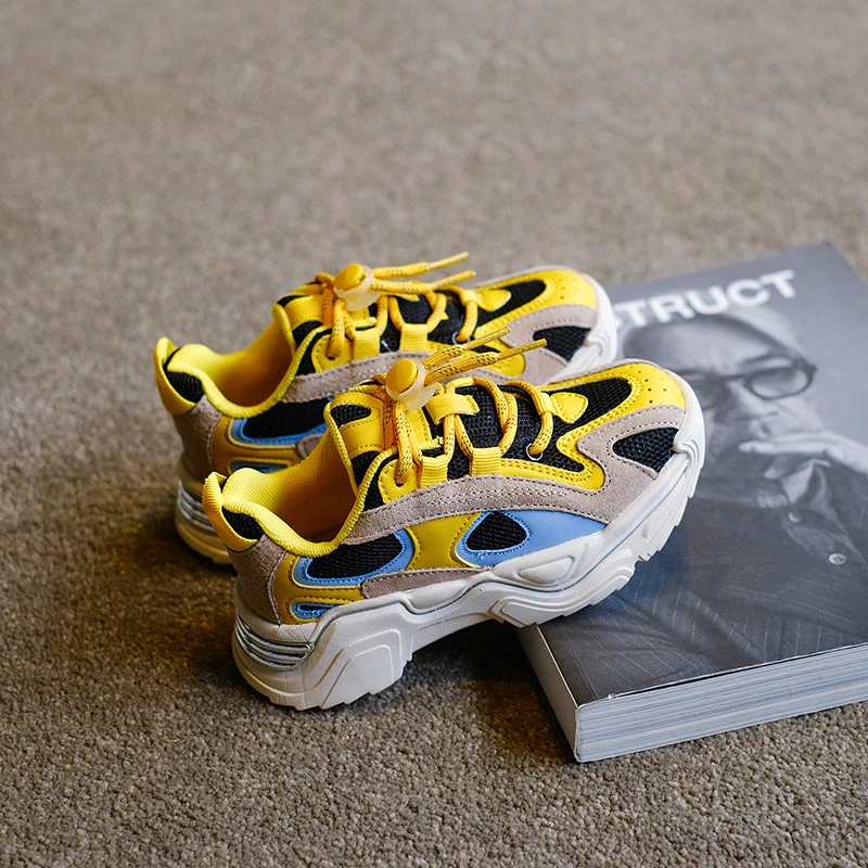Кроссовки детские из натуральной кожи, массивные, Брендовые спортив...