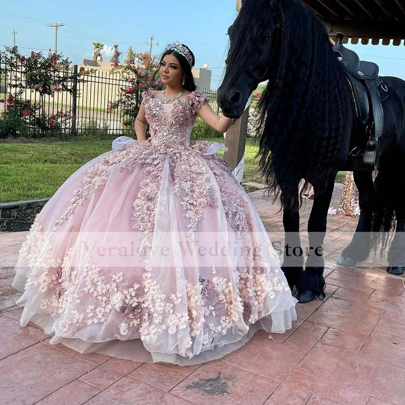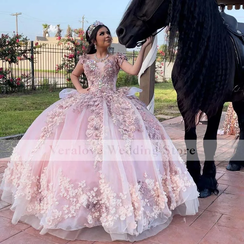 Великолепные милые розовые платья для девушек 16 дюймов с кружевной аппликацией, бальное платье с открытыми плечами, платье для выпускного вечера, фатиновые многоярусные маскарадные платья