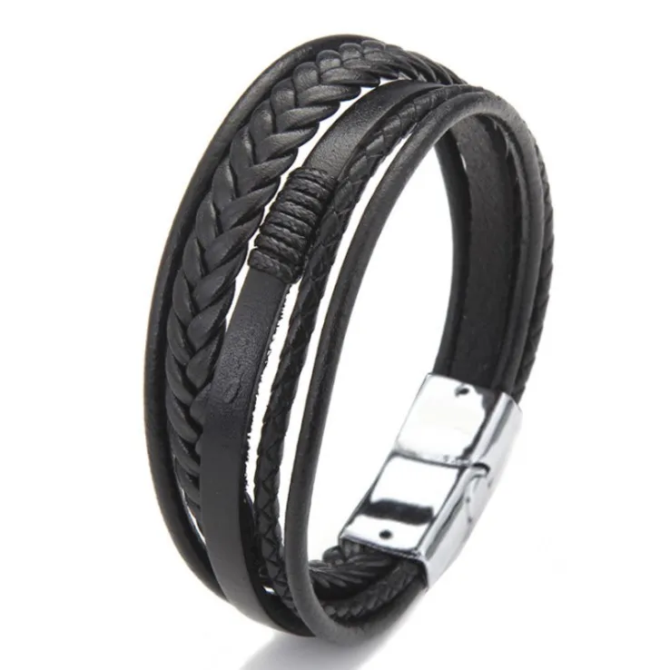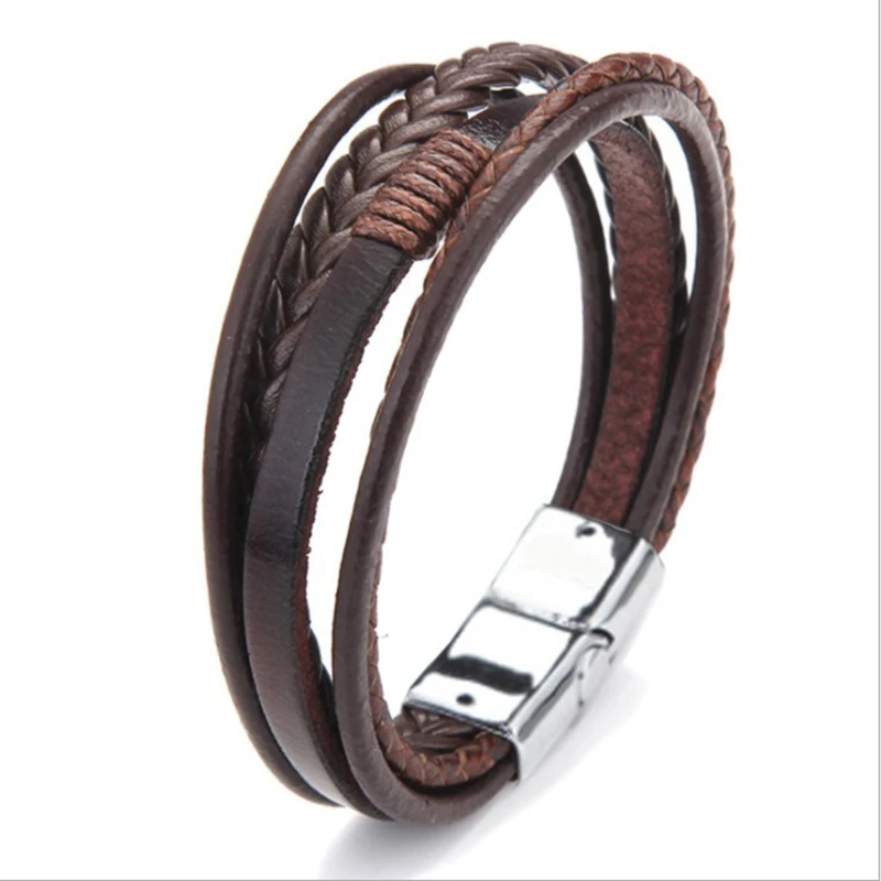 Классический Браслет из натуральной кожи для мужчин и женщин, многослойный веревочный браслет ручной работы с подвесками, хороший подарок для мальчиков