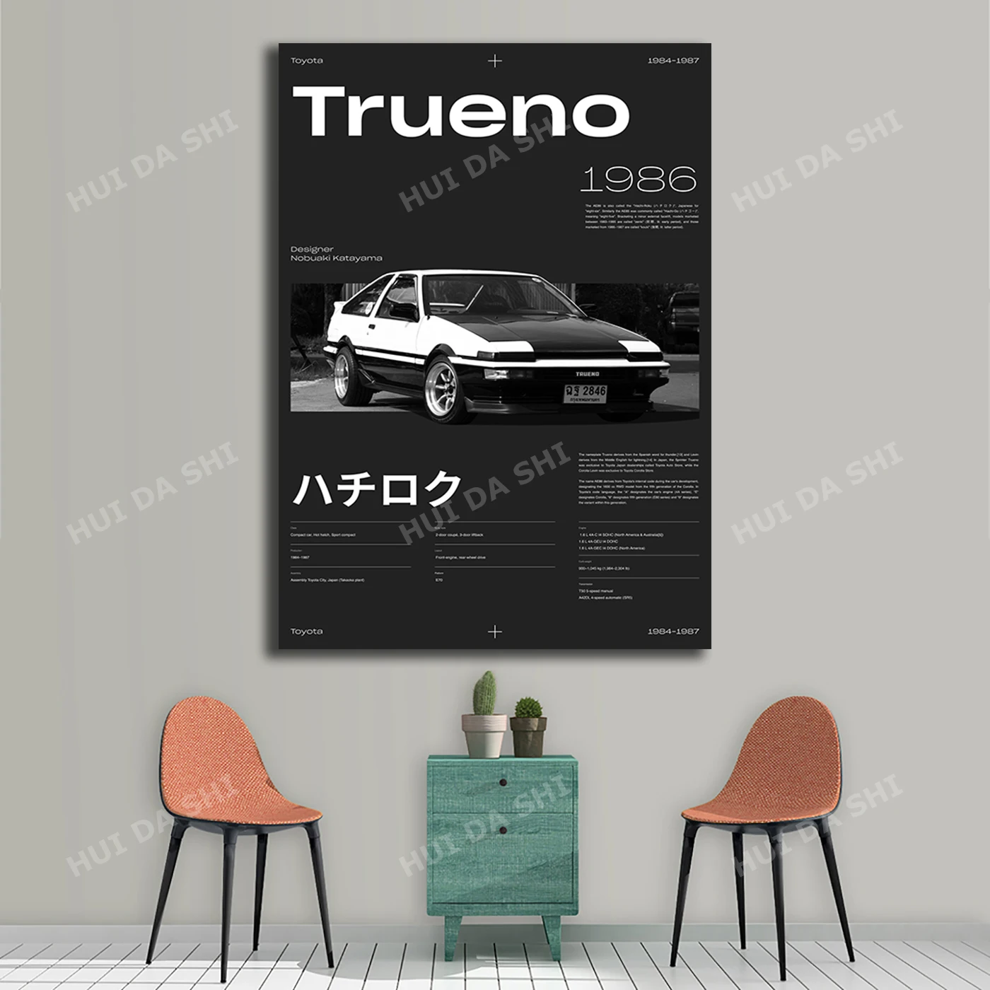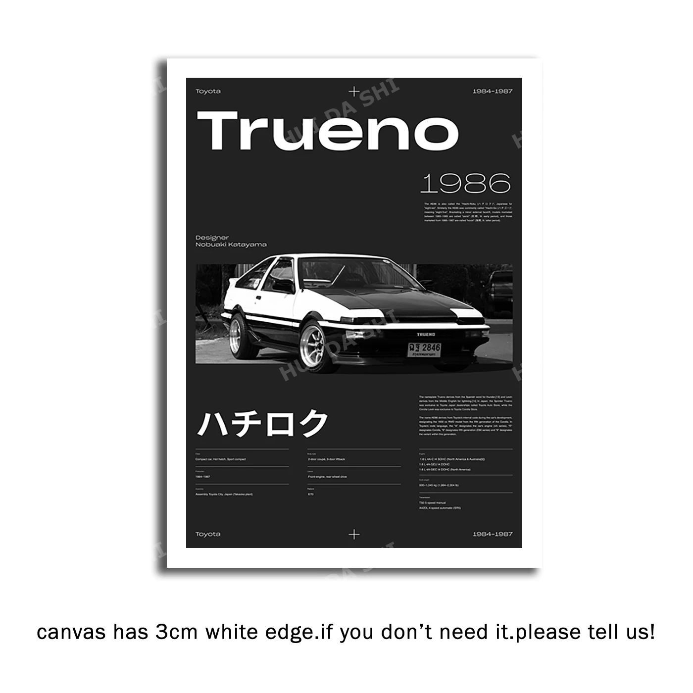 Toyota Trueno AE86 Печатный, JDM цифровой печатный плакат, плакат JDM с классическими японскими автомобилями, плакат Toyota Trueno, Ae86,