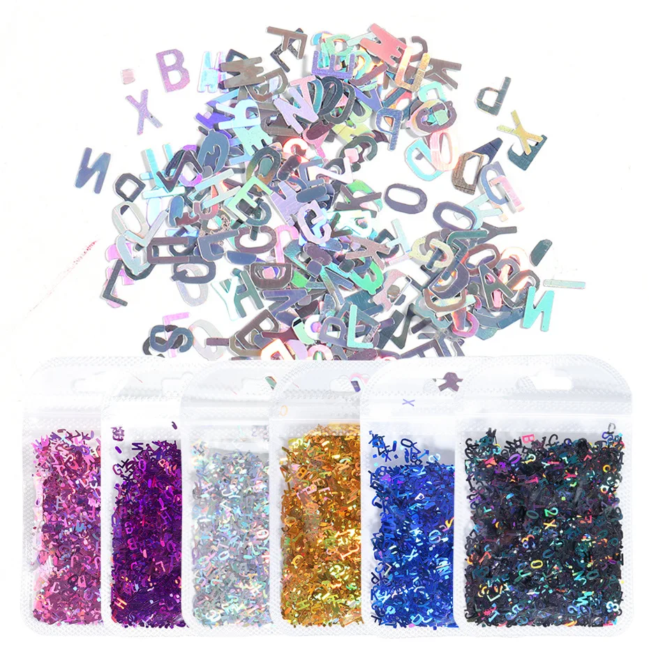 Маникюрные блестки с английскими буквами, блестки, лазерная Смешанн...