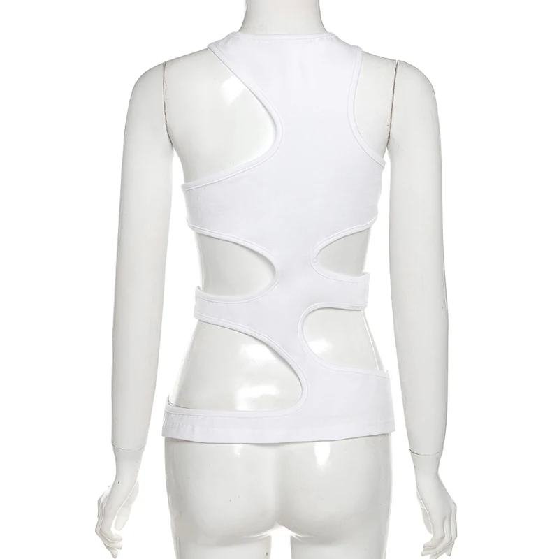 Женский топ без рукавов, облегающий топ с вырезом, белая уличная одежда, 2021