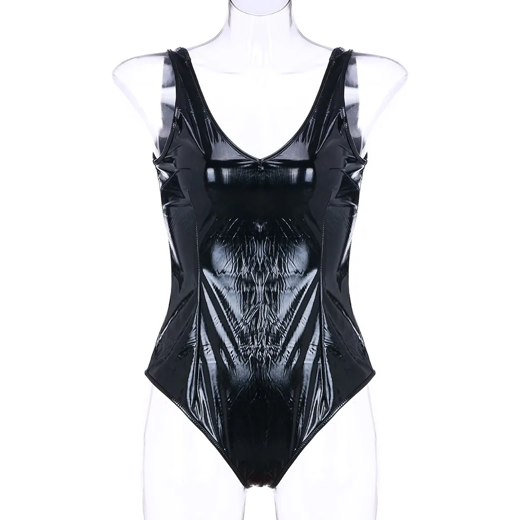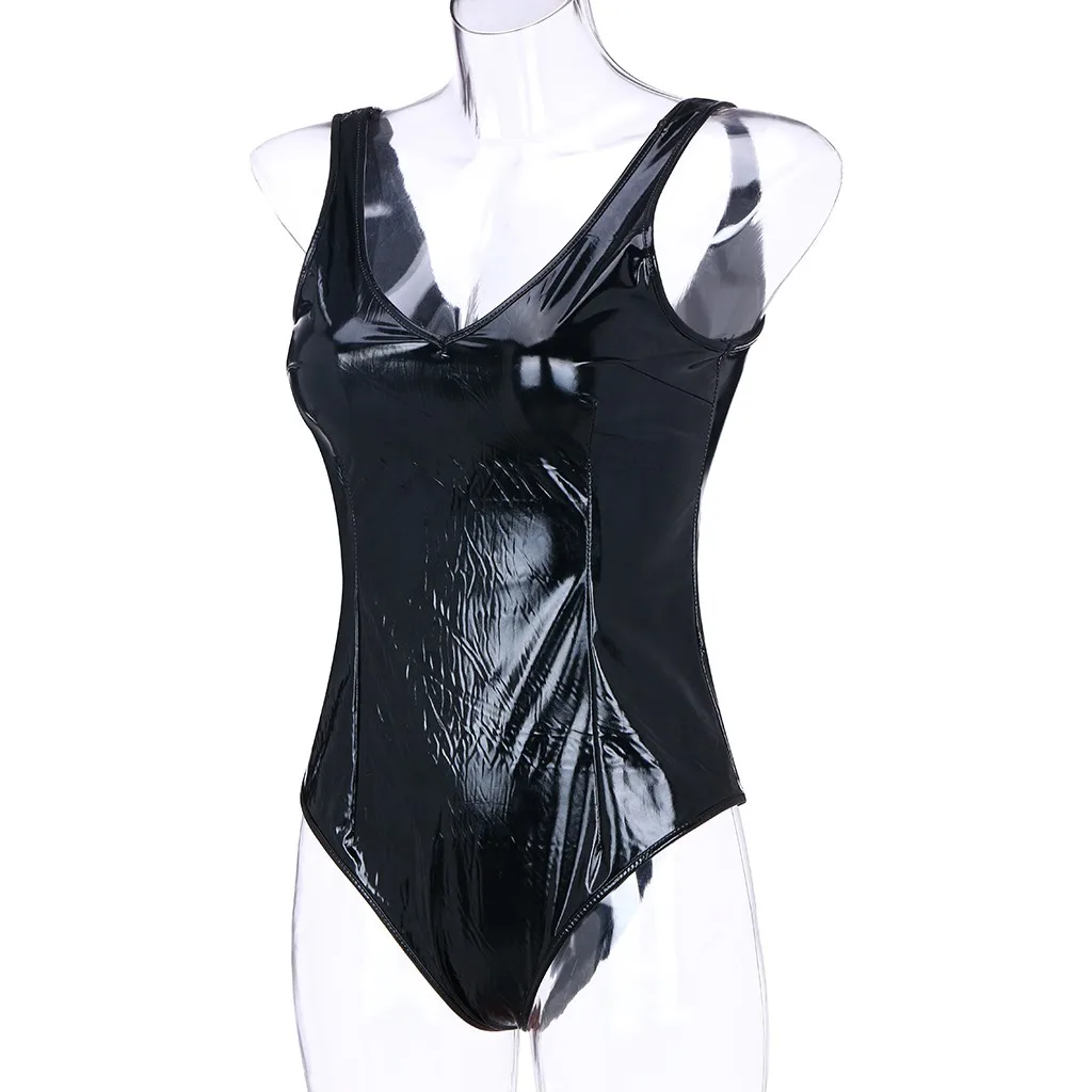 Женское нижнее белье из искусственной кожи, эротическое нижнее белье с V-образным вырезом, Сексуальная Клубная одежда с открытой спиной, чувственное женское нижнее белье, экзотические костюмы