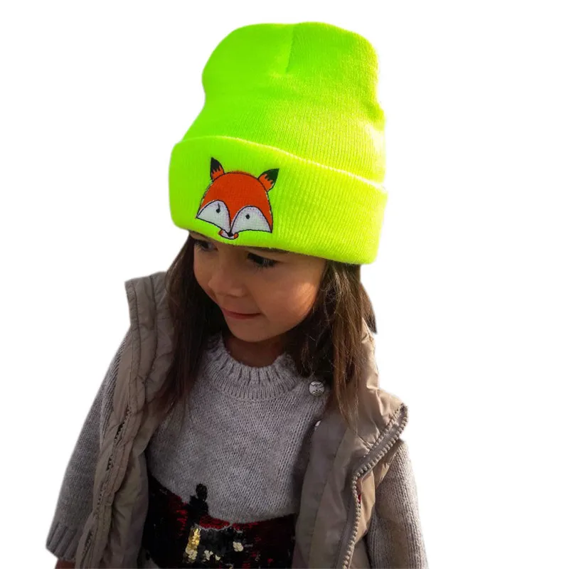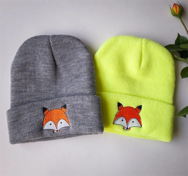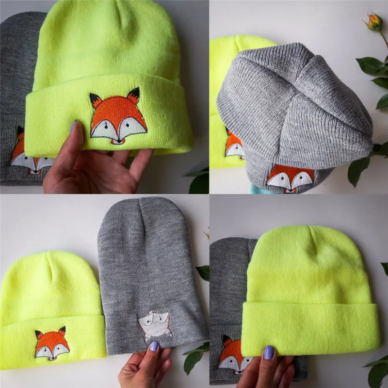 Новая зимняя шапка бини для женщин и мужчин, уличная вязаная шапка с лисой для мальчиков и девочек, шапка унисекс, осенняя вязаная крючком шапка, Дикие аксессуары