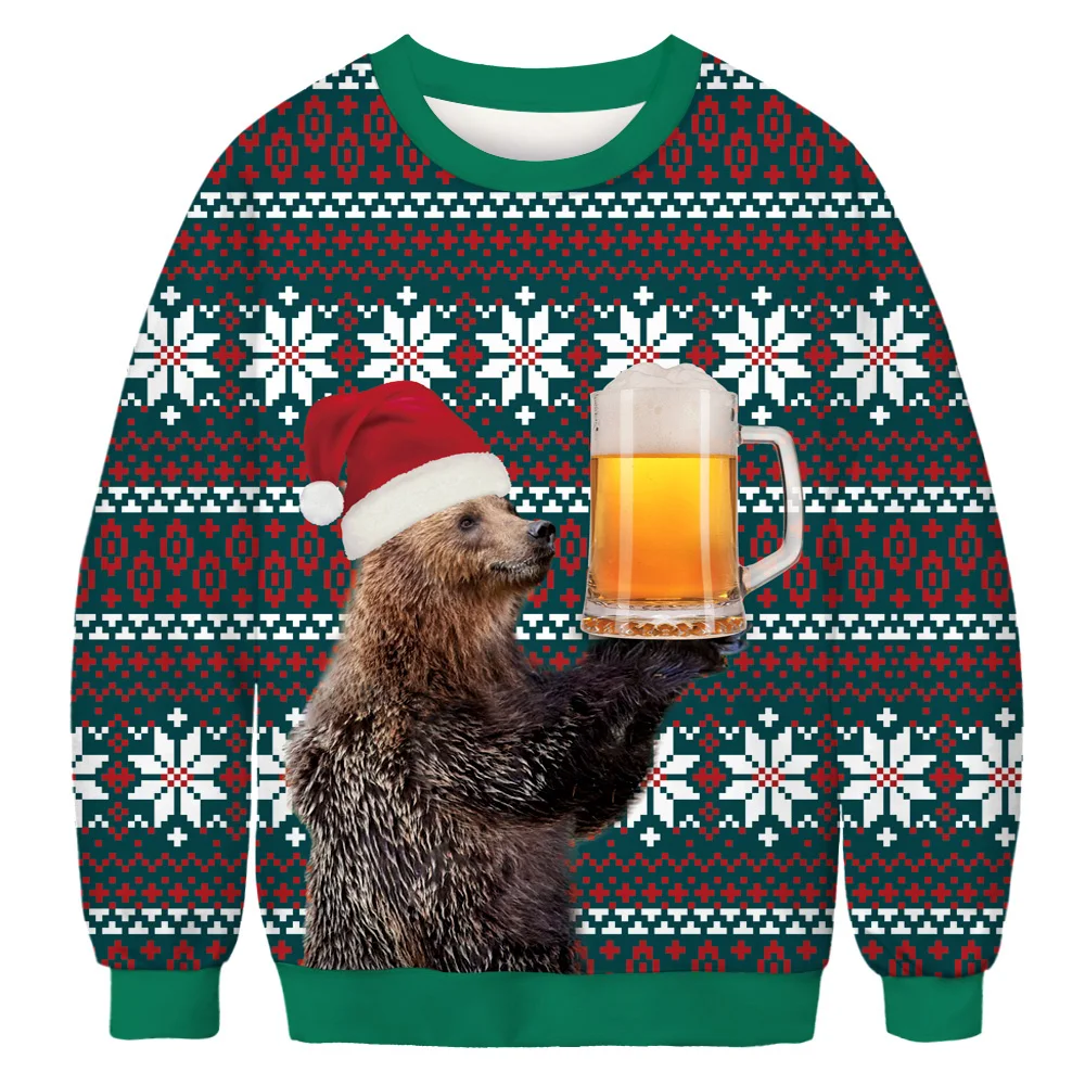 Свитер унисекс с забавным принтом в виде животных, рождественский джемпер, праздничный Повседневный свободный свитер, осенне-зимние пуловеры, топы