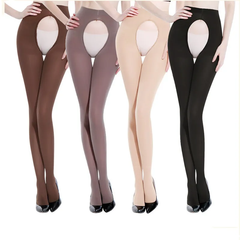 Женские колготки с вырезом 120D, сексуальные эротические супер эластичные бархатные открытые обтягивающие Осенние Колготки большого размера с открытой промежностью, размера плюс
