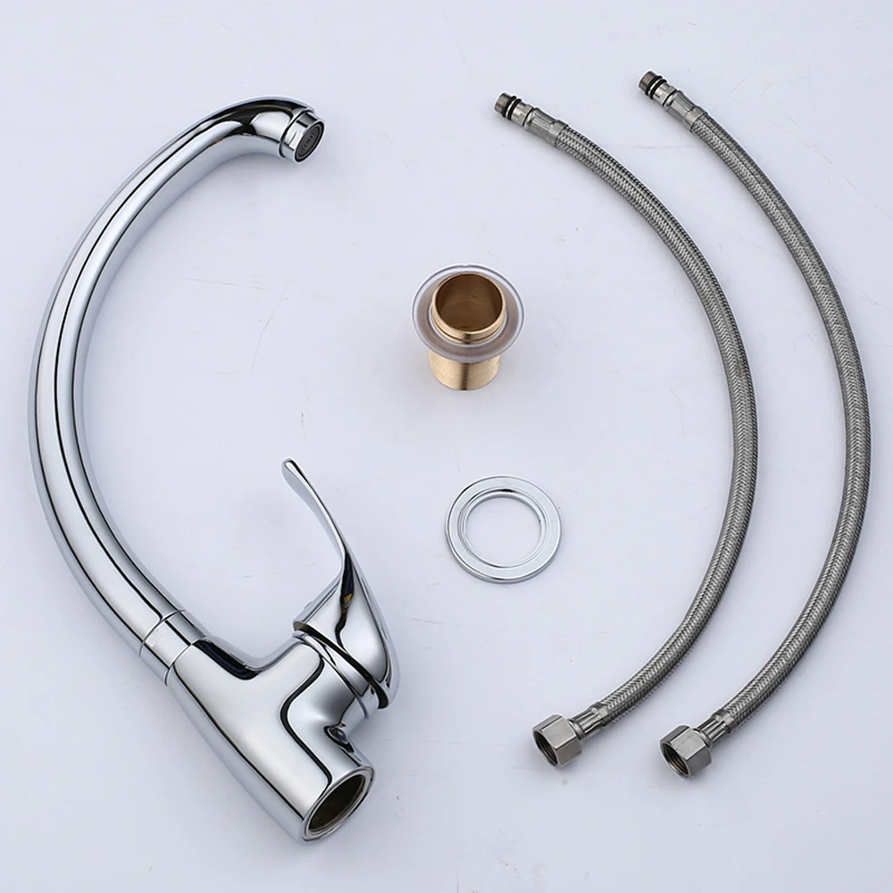 Смесители для кухни QUEEXU, поворотный кран на 360 градусов, из цинкового сплава, одно отверстие, холодная и горячая вода