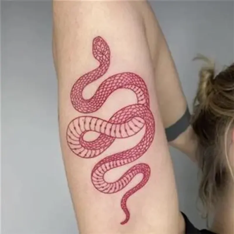 Краснаячерная тату-наклейка в виде змеи, унисекс, Большая водонепро...