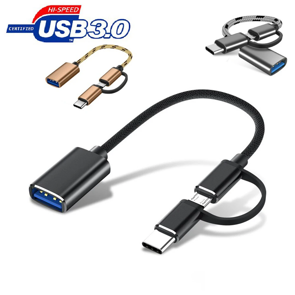 2 в 1, адаптер USB 3,0 OTG, нейлоновый кабель Type-C Micro USB на U...