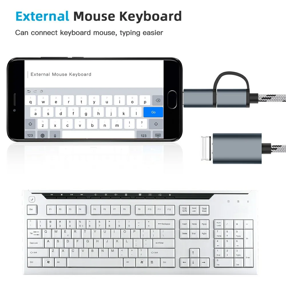 2 в 1 кабель-адаптер OTG, нейлоновый адаптер BraidMicro USB Type-C ...