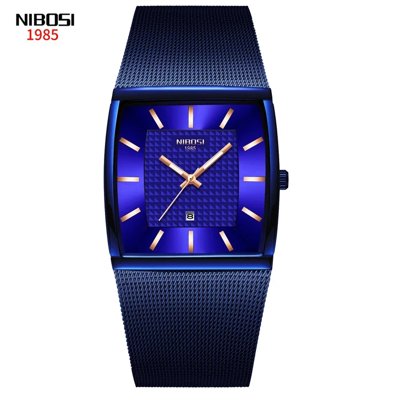Мужские часы NIBOSI Blue Square s, Роскошные Кварцевые часы ведущей марки, мужские тонкие водонепроницаемые наручные часы для мужчин, мужские часы 2376