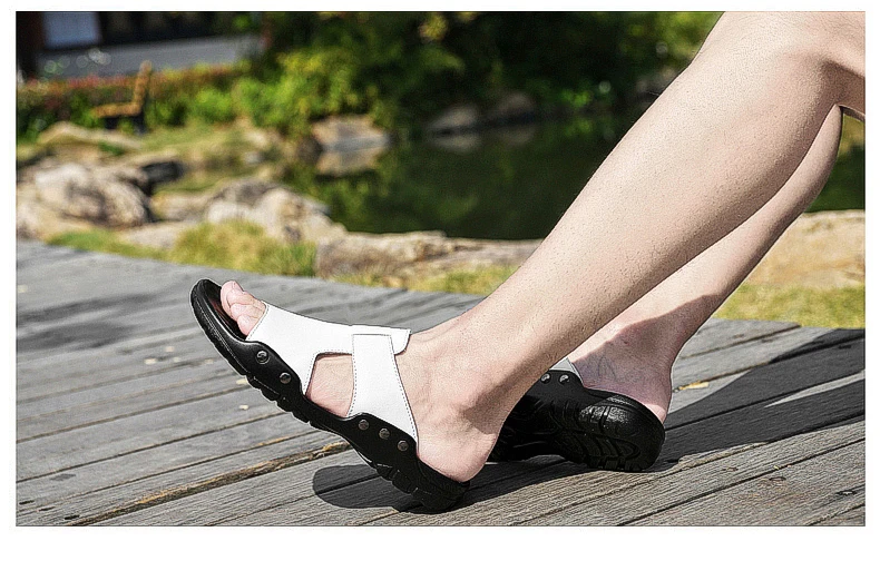 Шлепанцы мужские летние из натуральной кожи, брендовые сандалии, Повседневная Уличная обувь, Нескользящие, для дома и пляжа, большие размеры 37-52