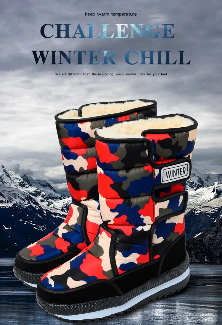 Зимние новые сапоги из хлопка, плюшевые высокие сапоги на толстом каблуке, женские теплые Нескользящие сапоги, зимняя обувь средней высоты