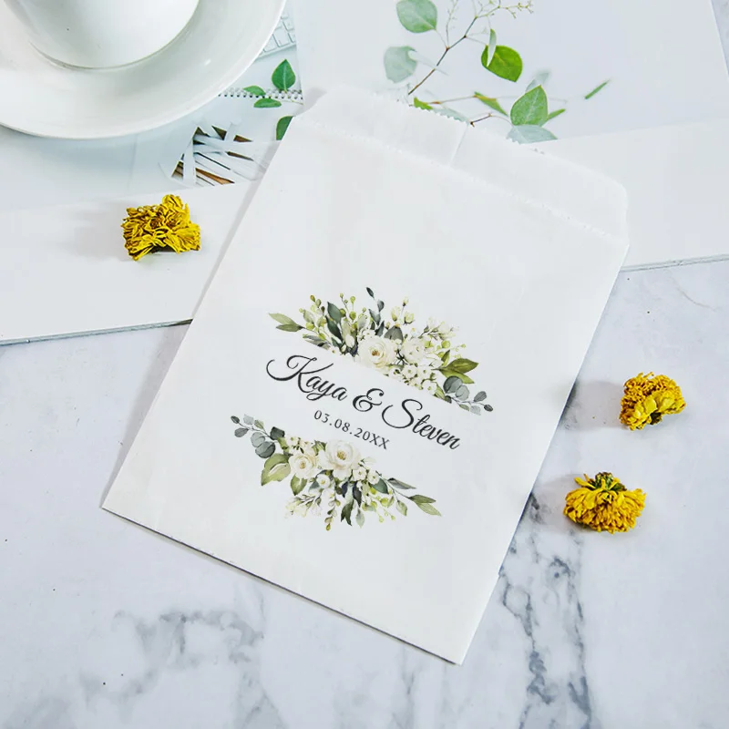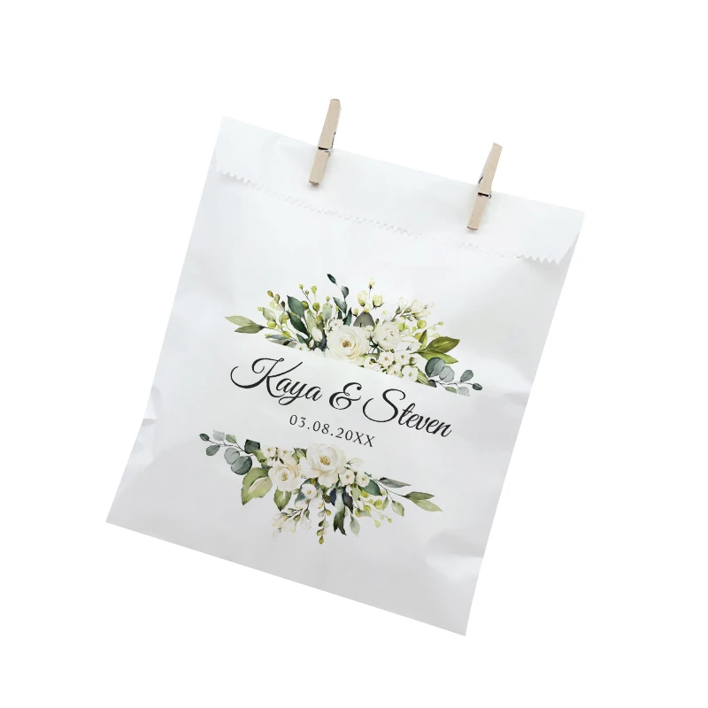 Индивидуальная зеленая розовая свадебная сумочка, персонализированная Дата с именем, белаяКрафтовая фотобумага для декора невесты Вечерние вечеринки