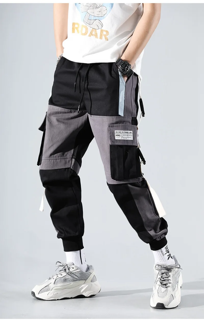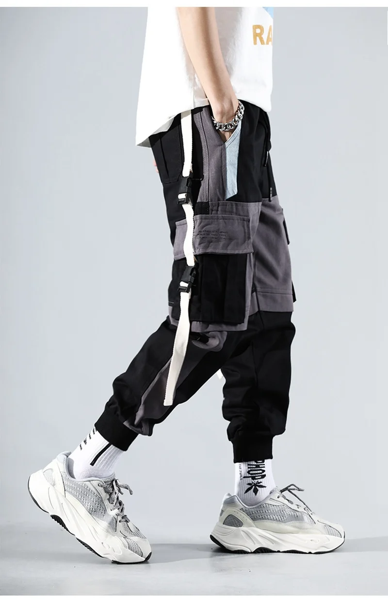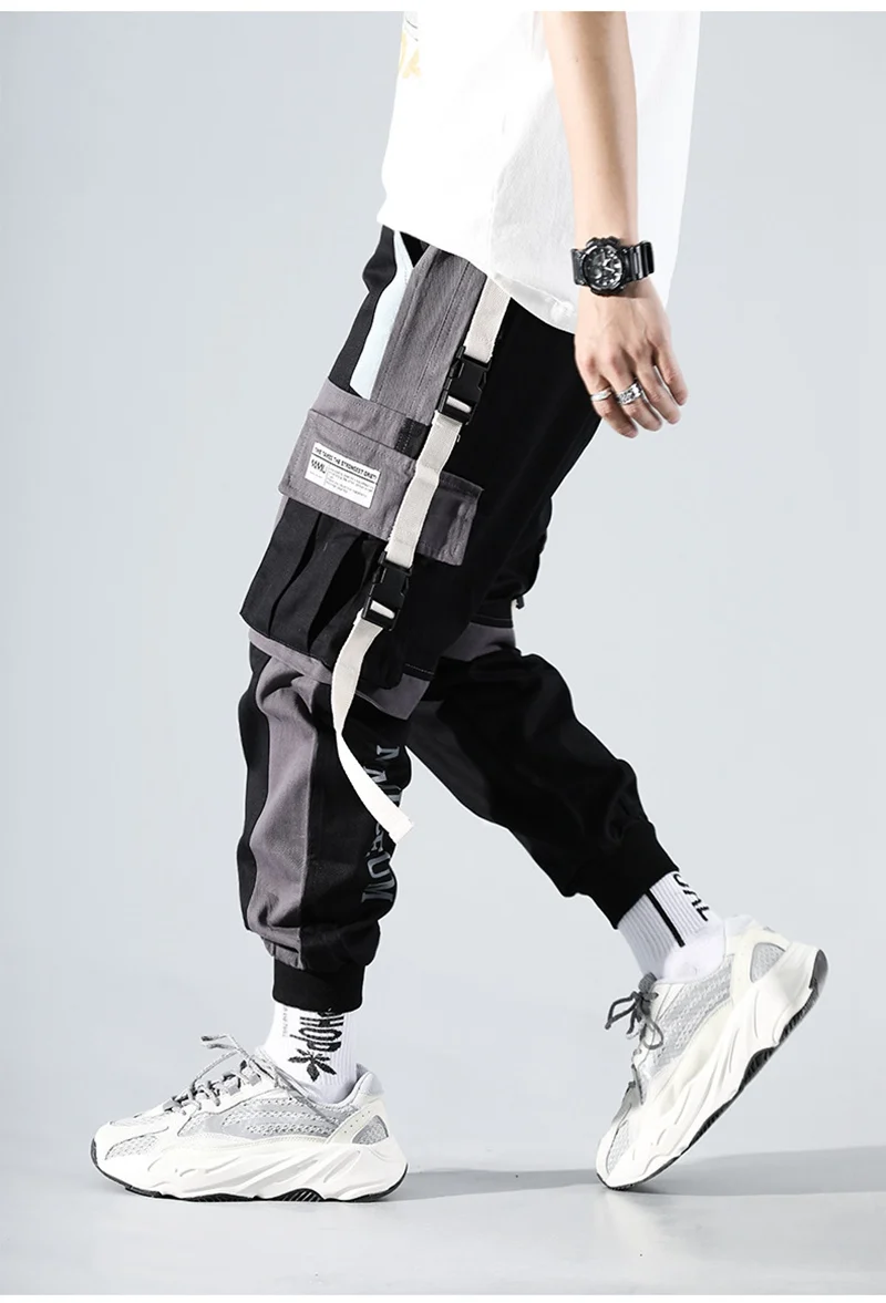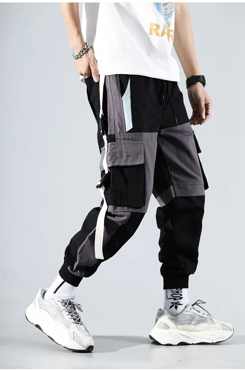 Брюки-карго мужские в стиле хип-хоп, свободные штаны с прострочкой, уличная одежда, контрастные Джоггеры в стиле Харадзюку со множеством карманов, длинные штаны