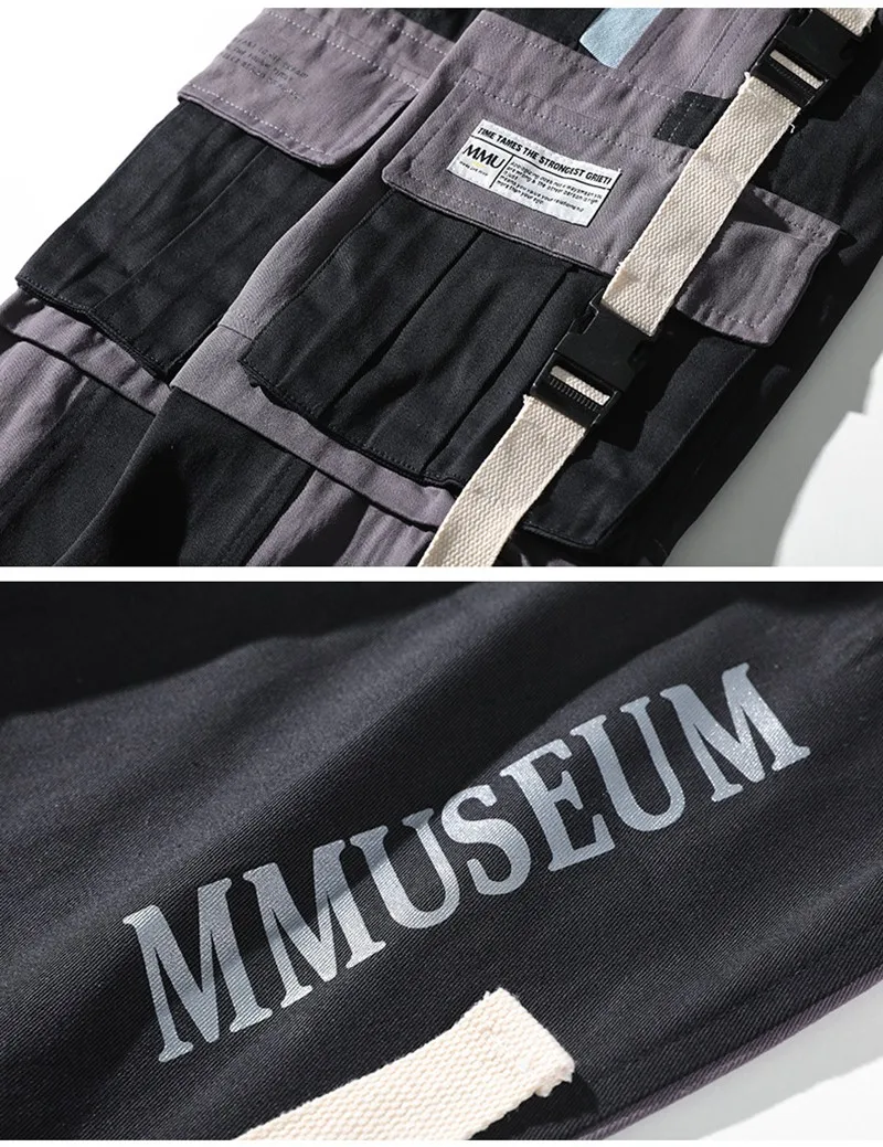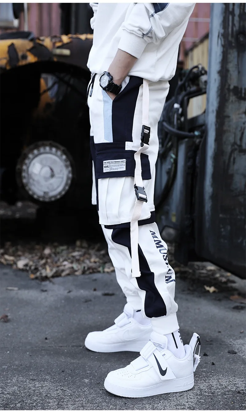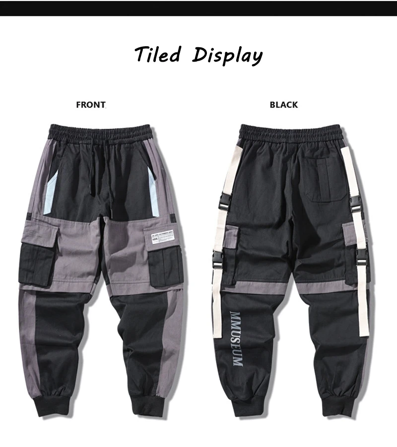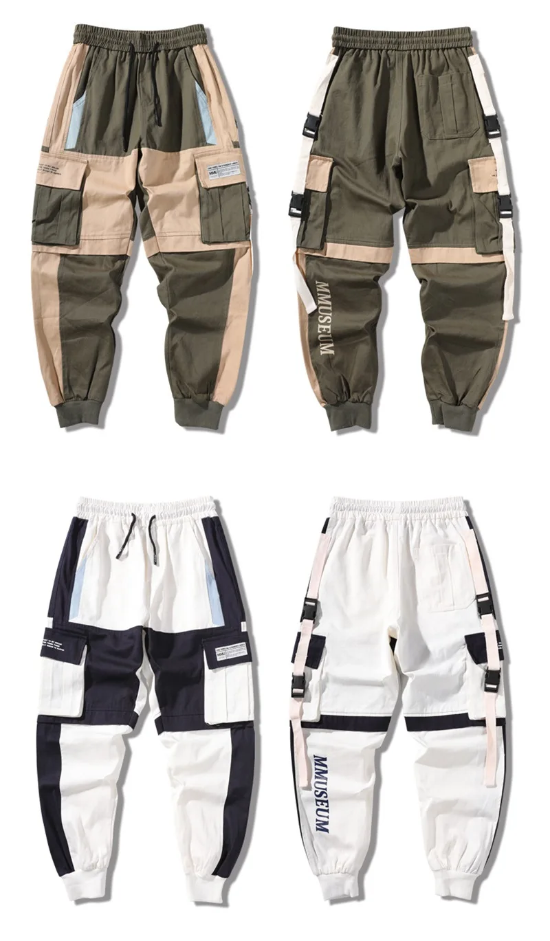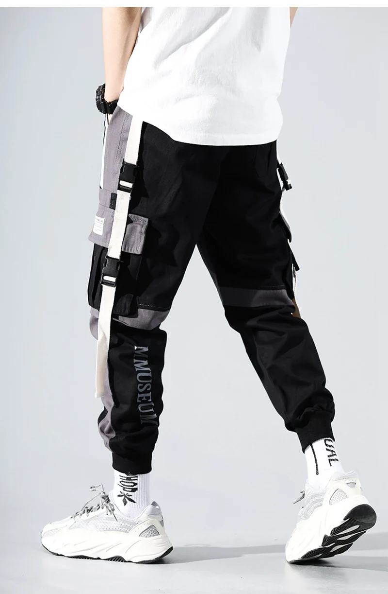 Брюки-карго мужские в стиле хип-хоп, свободные штаны с прострочкой, уличная одежда, контрастные Джоггеры в стиле Харадзюку со множеством карманов, длинные штаны