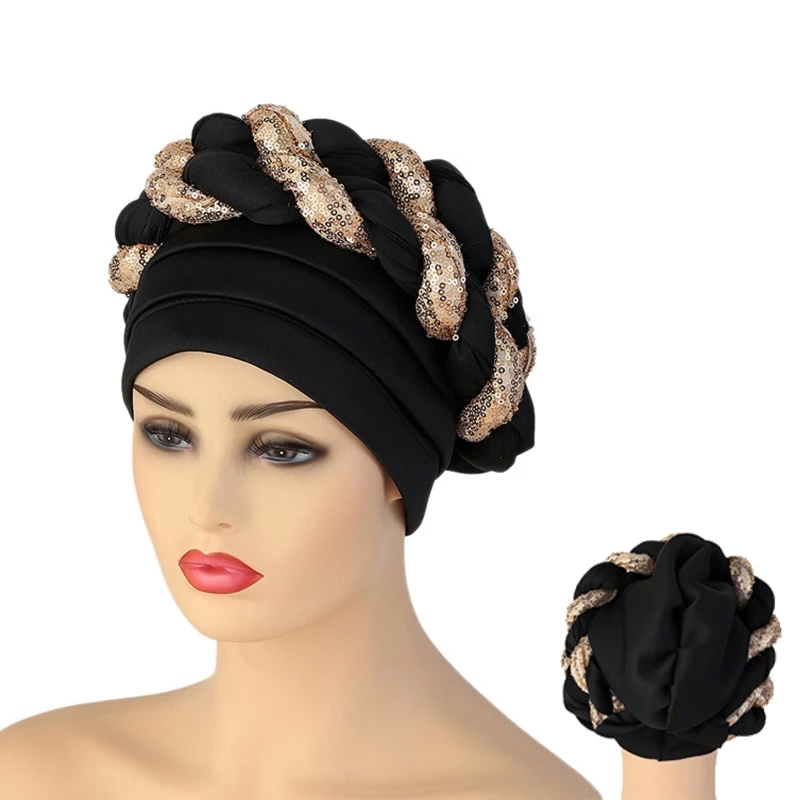 Новинка 2021 г., новинка, головной убор Aso Oke в африканском стиле с блестящими блестками, Женский тюрбан, головной убор
