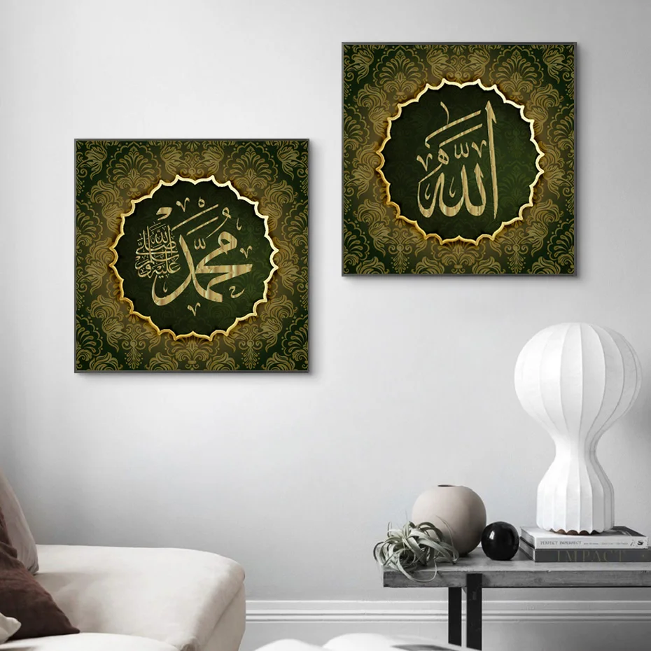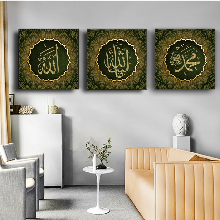 Исламский арабский зеленый узор Каллиграфия Живопись мусульманский Холст Картина настенный художественный плакат Рамадан спальня гостиная домашний декор
