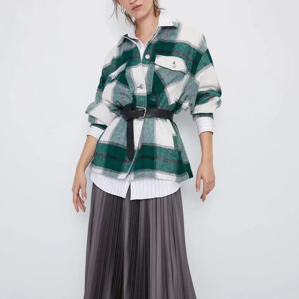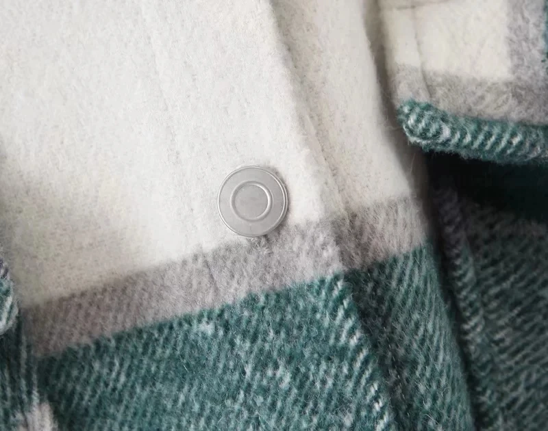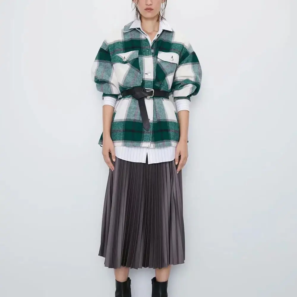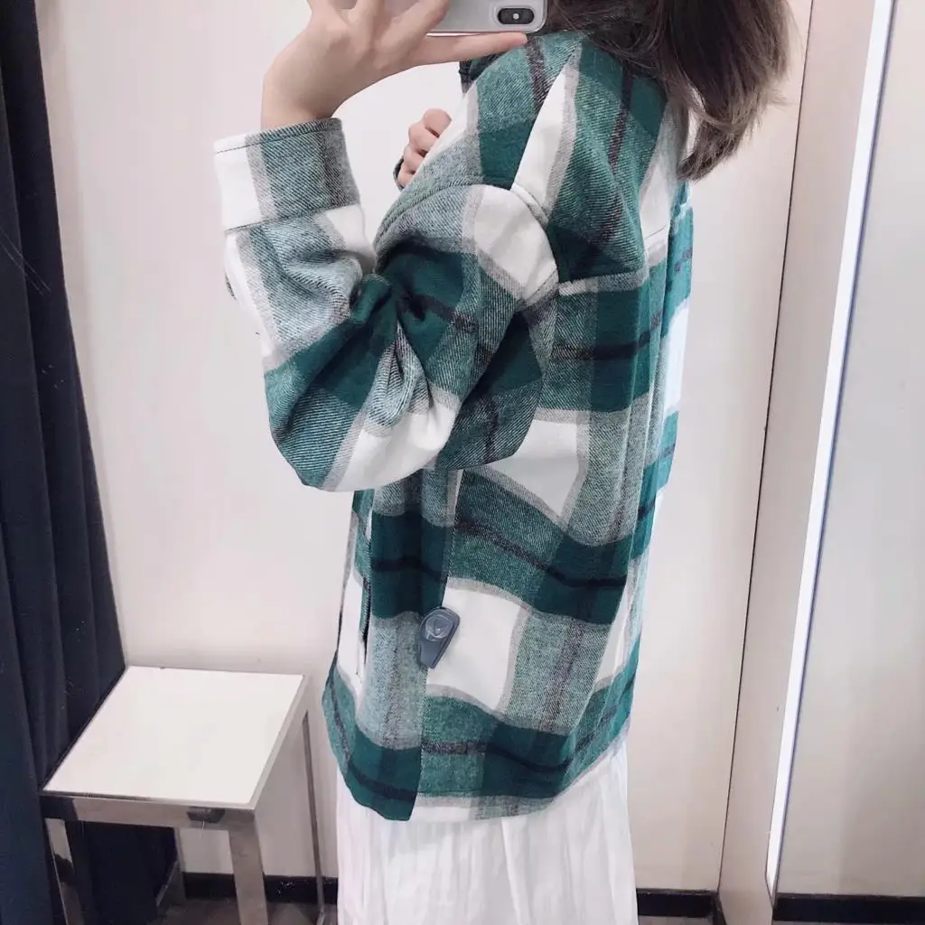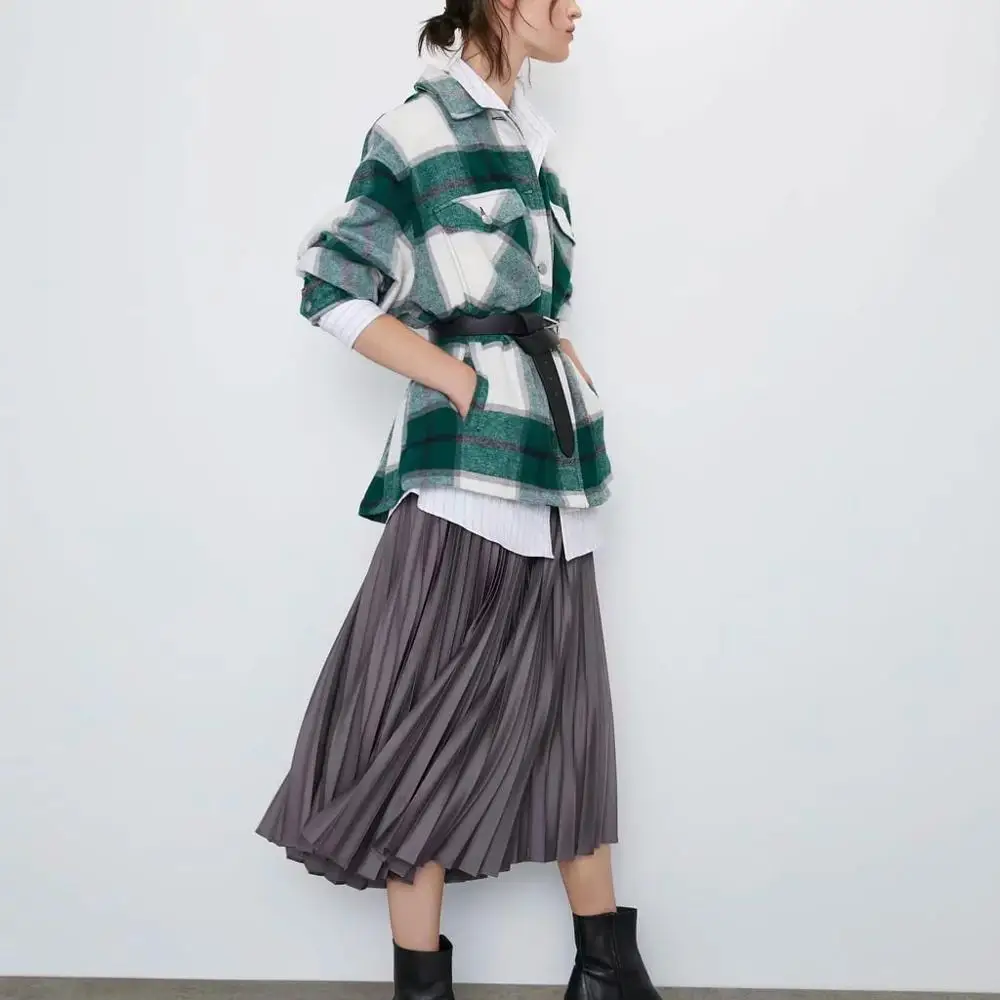 Женская Клетчатая Шерстяная рубашка ZA, твидовое плотное пальто, теплая верхняя одежда, винтажные пальто оверсайз, женская одежда для осени и зимы