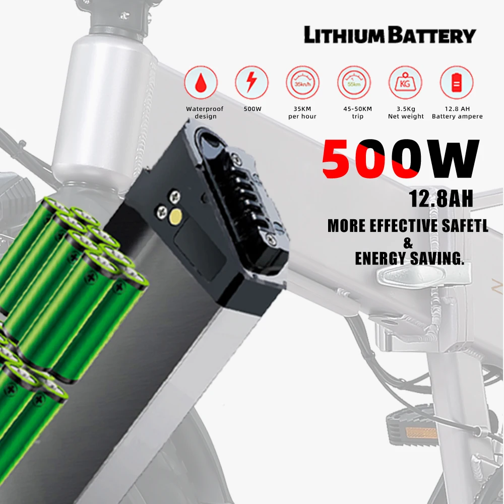 Электрический велосипед, 20 дюймов, аккумулятор для электровелосипеда, внедорожник 20 дюймов, 500 Вт, 90 км, 7 скоростей, 40 кмэлектрический велосипед