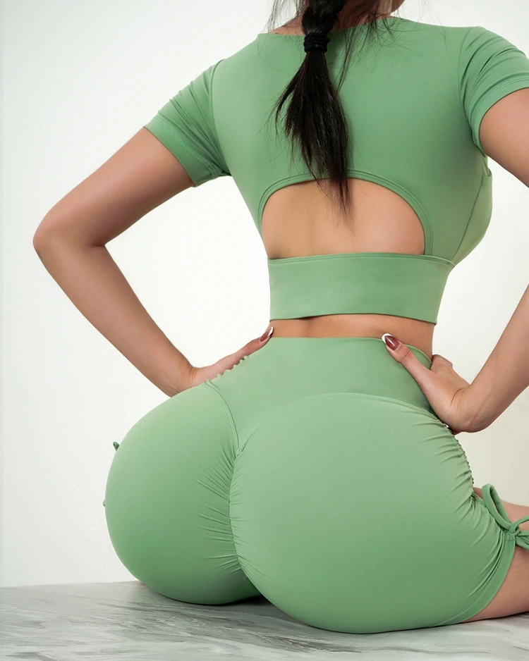 Женский сексуальный комплект для йоги, полый короткий рукав, укороч...