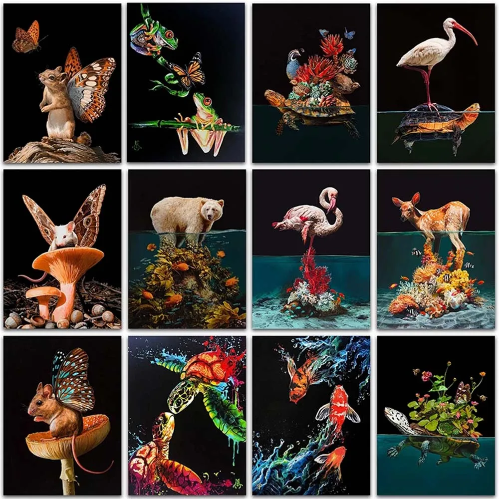 Набор для алмазной живописи 5D, набор для рисования темных животных, фламинго, рыба, олень, морская черепаха, мышь, полноразмерная и круглая вышивка, мозаика, рисование крестиком