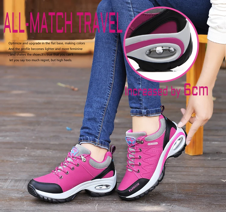 Женская прогулочная Уличная обувь для пеших прогулок; Размеры 39-48; Нескользящие кроссовки на воздушной подушке с толстой подошвой; Дышащая повседневная обувь