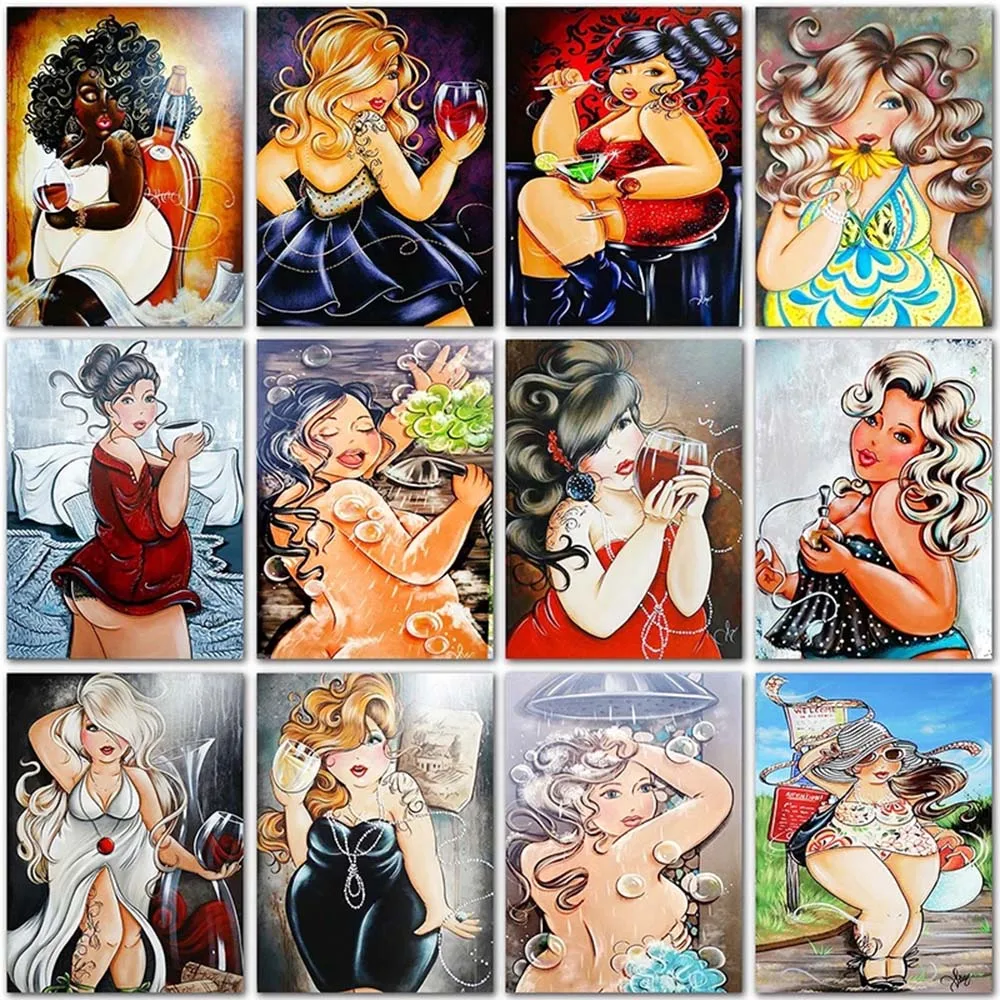 5D алмазная живопись сделай сам, мультяшная Милая домашняя картина с толстыми девушками, полноразмерная и круглая Алмазная вышивка, вышивка крестиком, Алмазная мозаика