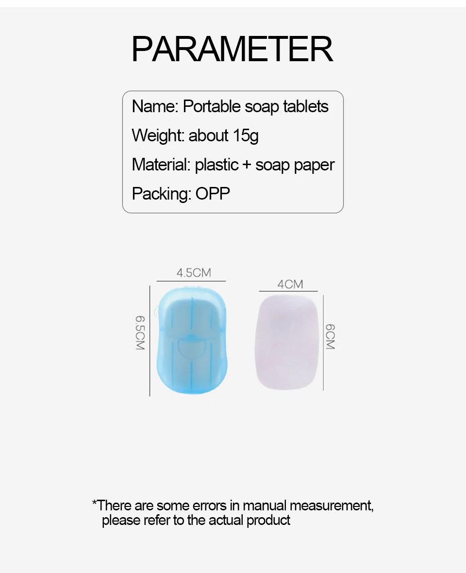 Размер: 6 см * 4 смМатериал: высокое качество PP5Стиль: дезинфицирующая мыльная бумагаТовар: 1 коробка мыльной бумаги/20 штЦвет коробки: разноцветный (отправляется случайным образом)