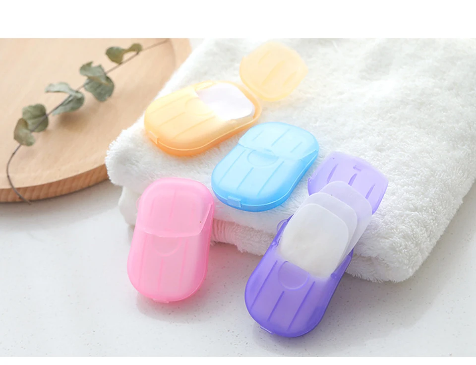 20 шт./кор. одноразовое мыло Бумага путешествия мыло Бумага мытье рук для ванной чистой Ароматические ломтик листов Ванная комната Кухня мини Бумага мыло