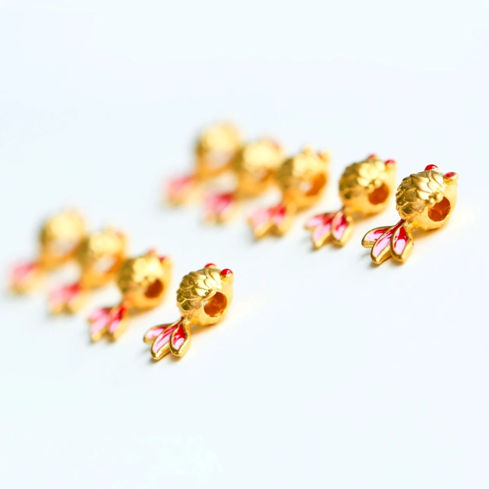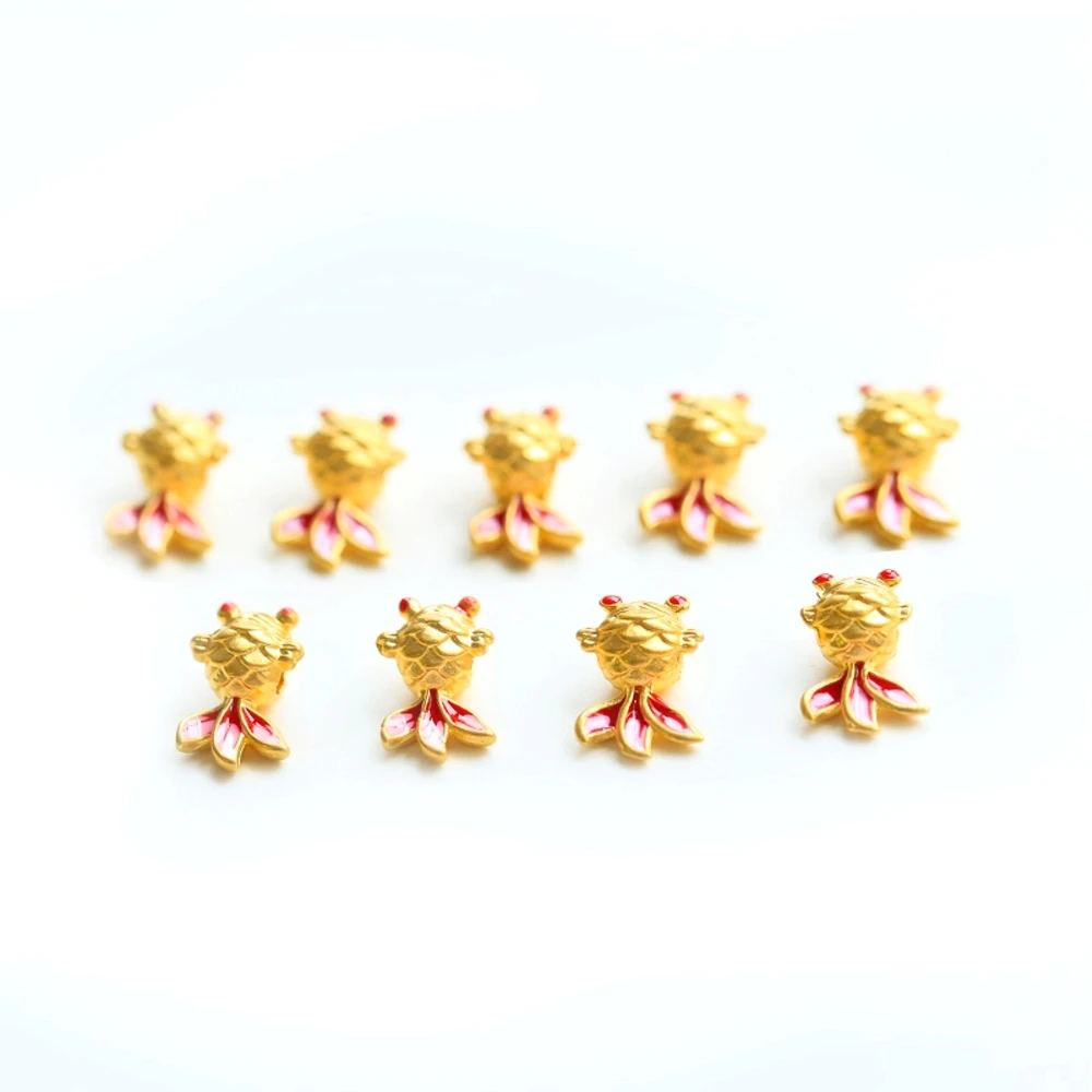 Подвеска-шарик в форме золотой рыбки, желтое золото 24 К, небольшой размер, 1 шт.