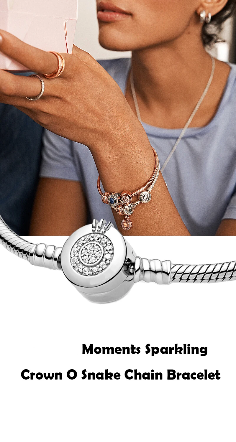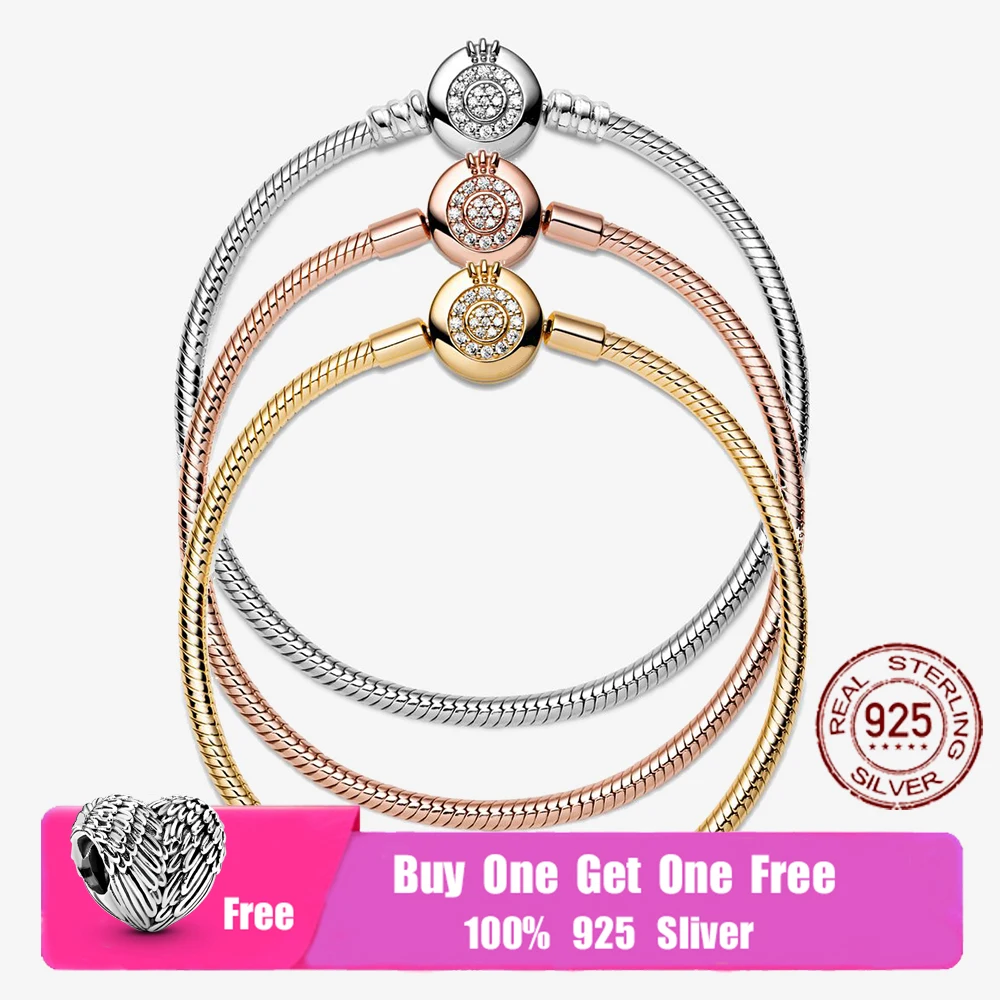 Женский браслет из серебра 2021 пробы, со сверкающей короной и змеей
