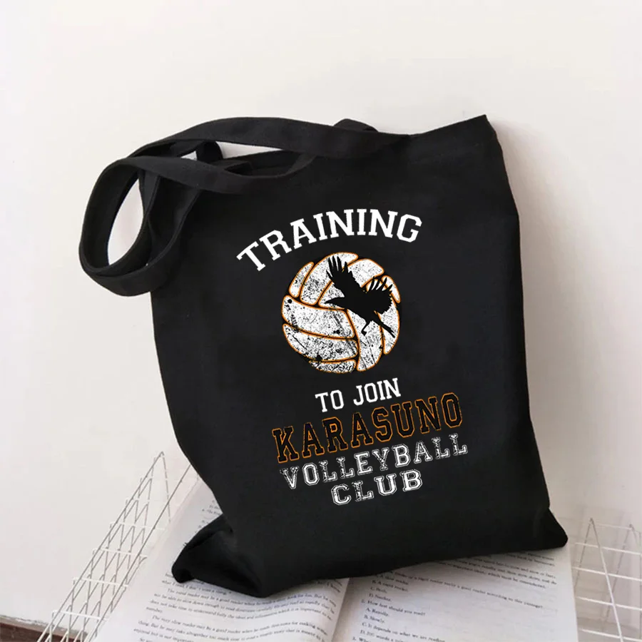 Сумка для покупок с застежкой-молнией из японского Аниме Haikyuu Karasuno, для Волейбольного клуба, Kawaii, Корейская, холщовая, черная, розовая