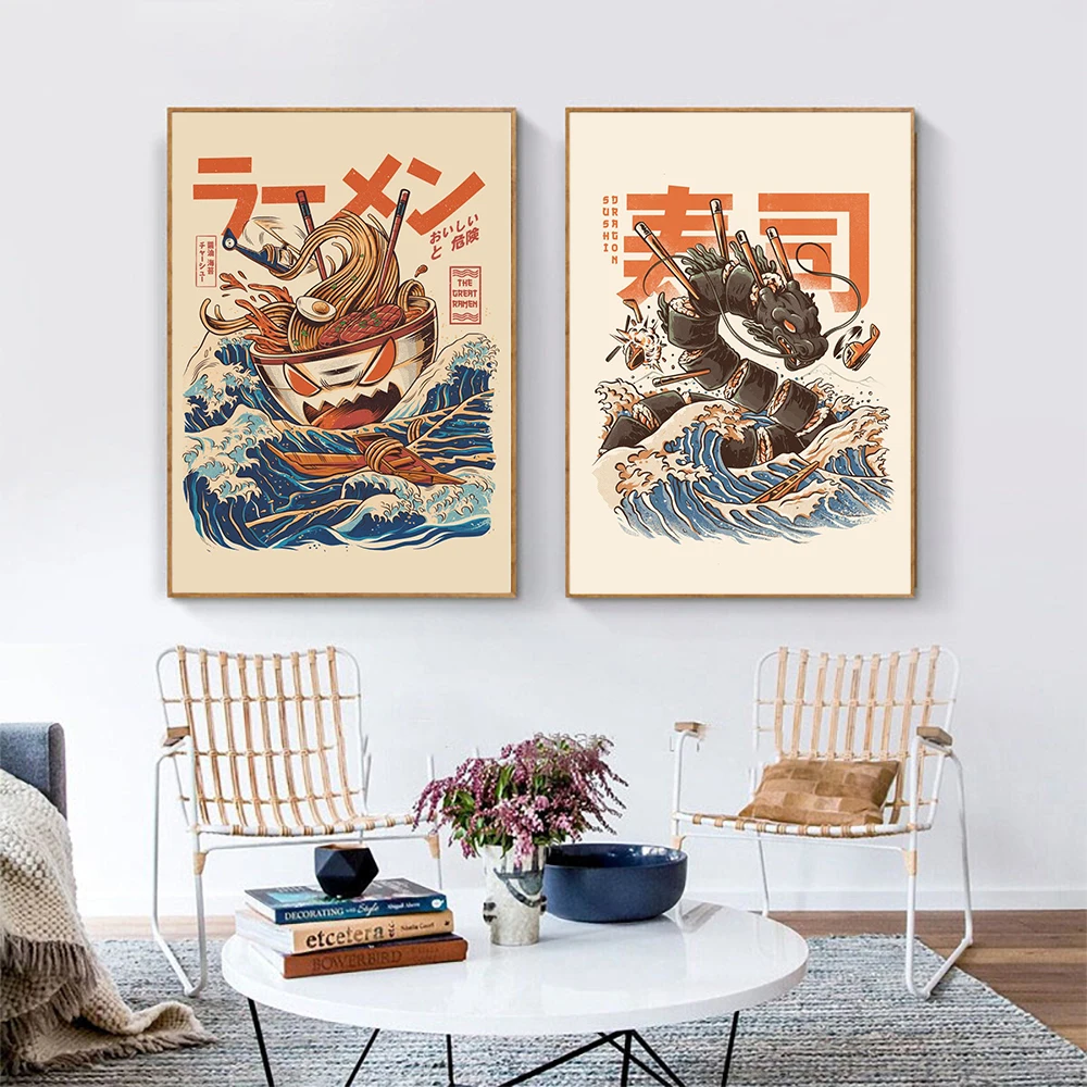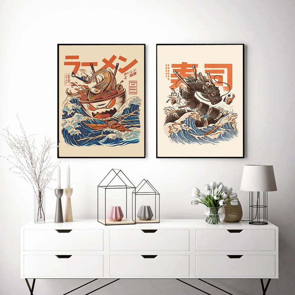 Настенная картина из японской еды, суши и рамен, абстрактные животные, картины дракона, Настенная картина для кухни, ресторана, домашний декор