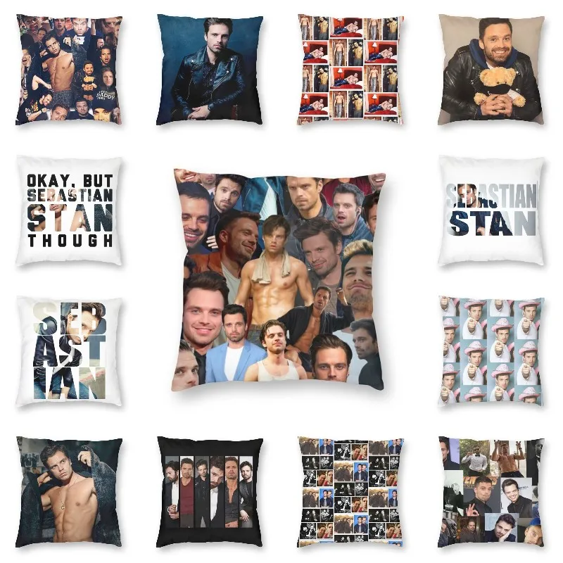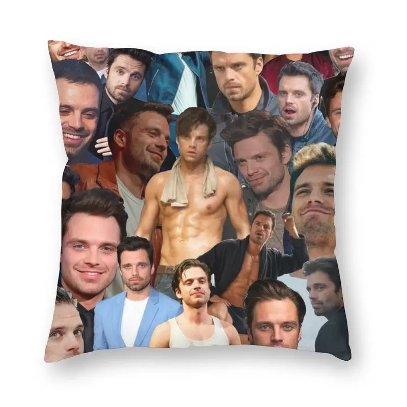 Мягкий чехол для подушки с изображением коллажа Себастьяна Стэна, для домашнего декора, 40x40 см, наволочка для гостиной