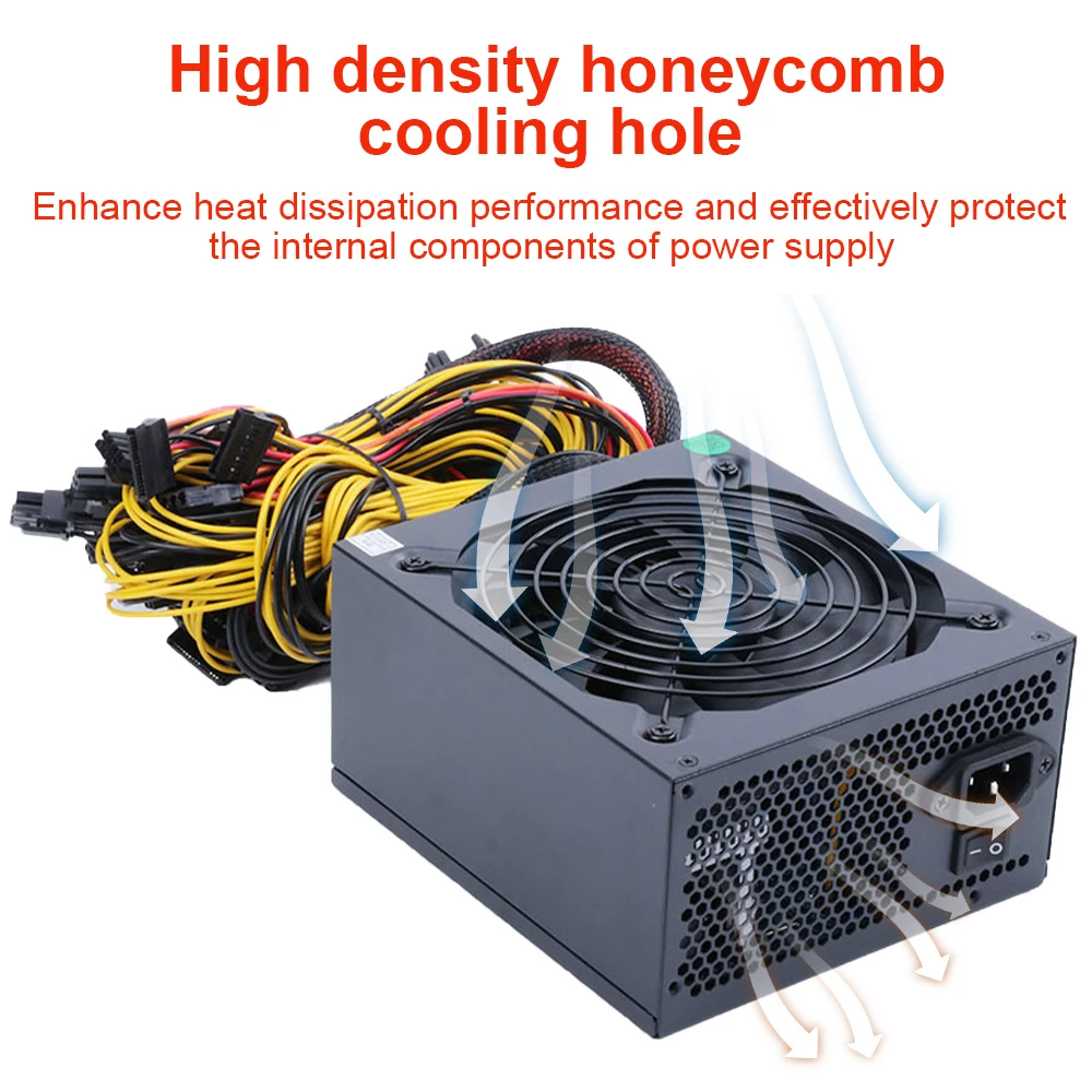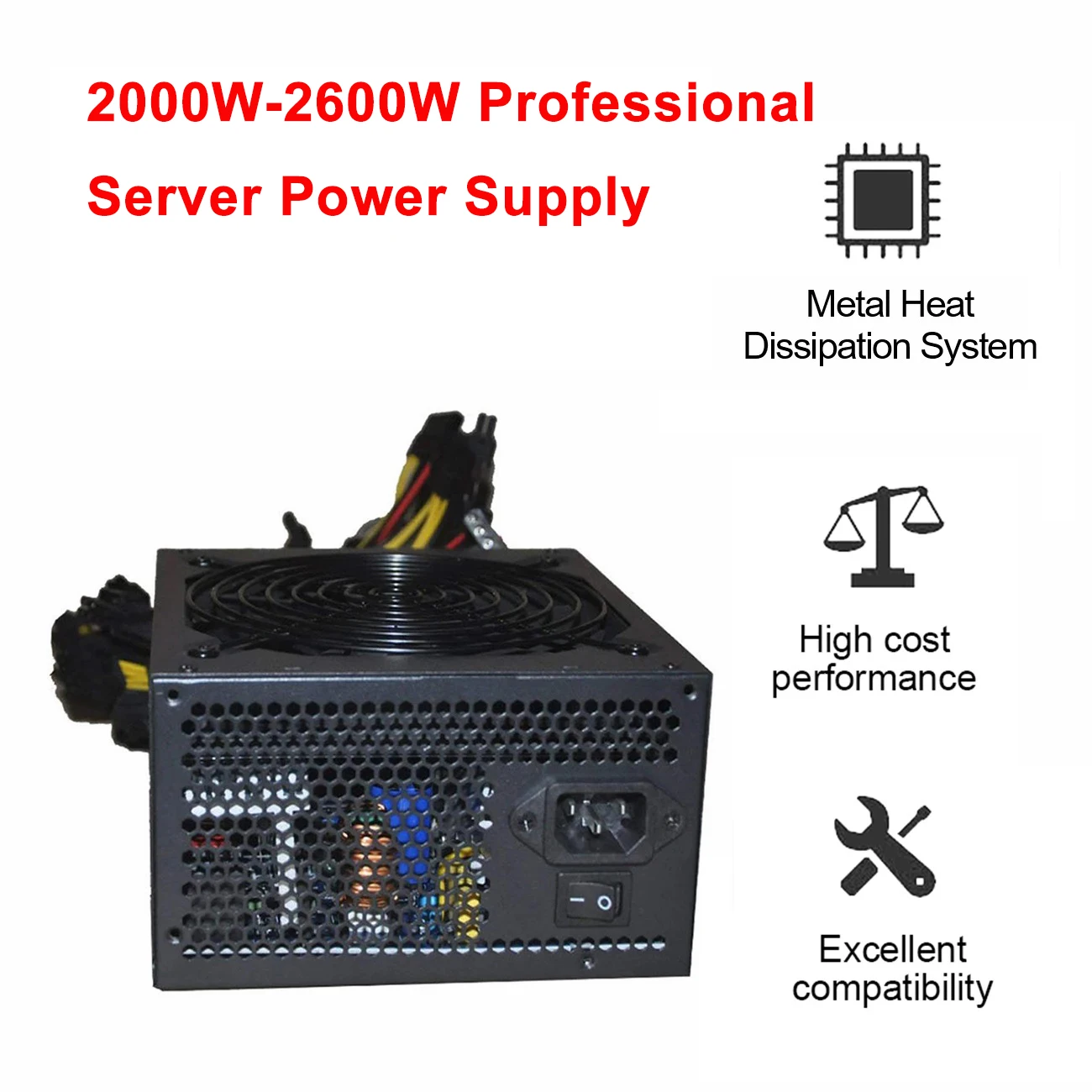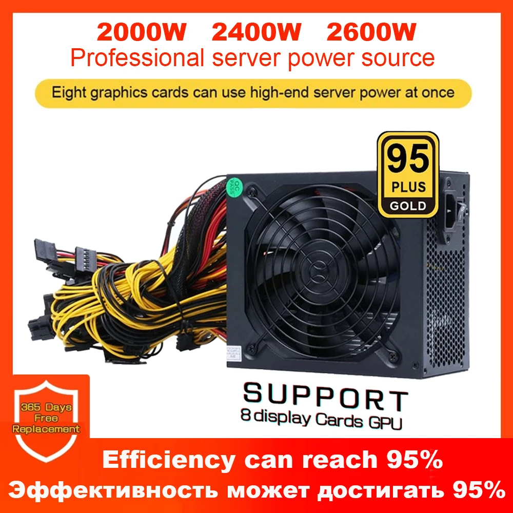 Блок питания для майнинга биткоинов ATX ETH, 2000 Вт, 2400 Вт, 2600 Вт, 180-240 В, 95% Эффективная поддержка 8 карт дисплея, GPU для майнинга биткоинов BTC