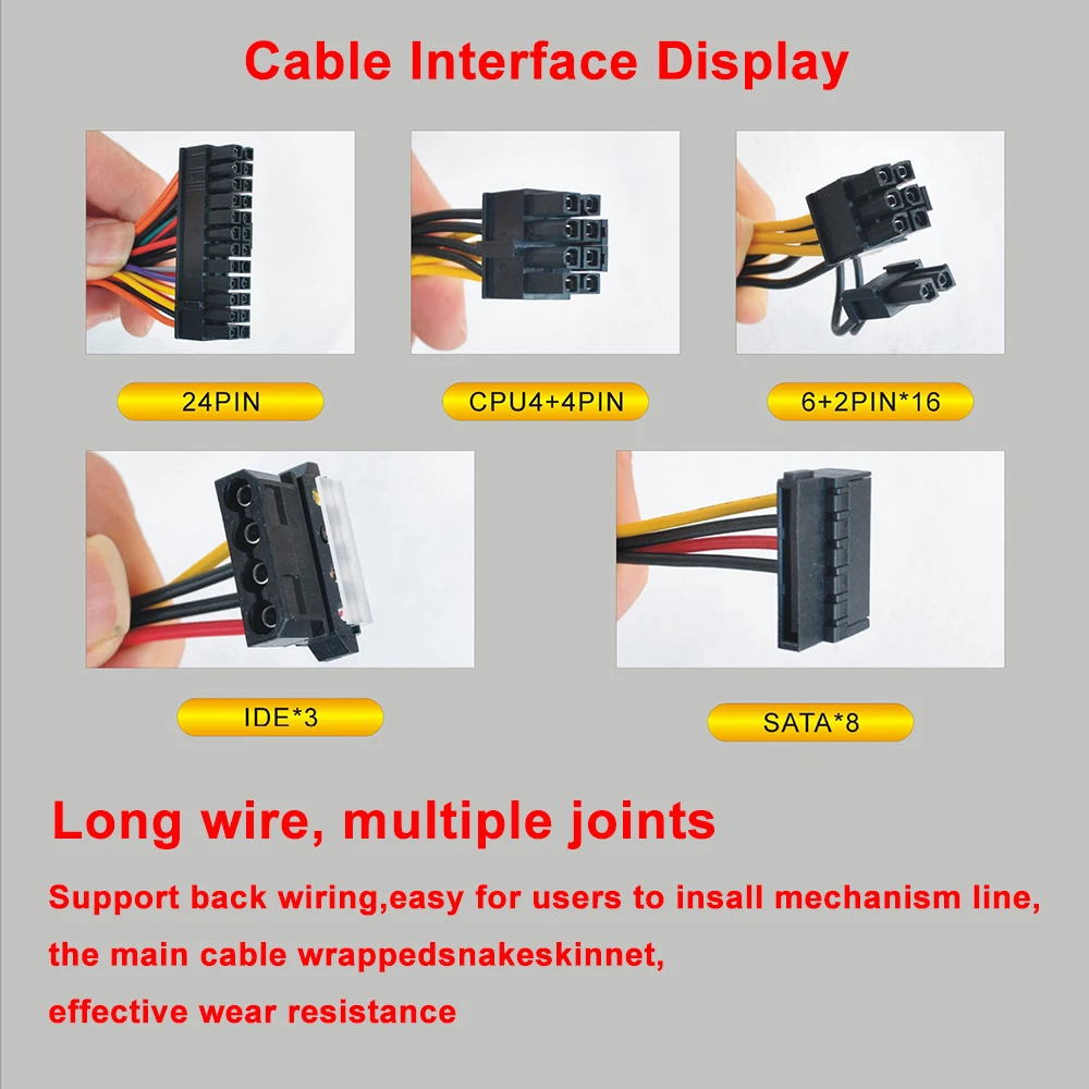 2. Сведения о группе линий электропередачи: материнская плата (20 + 4)P * 1 группа CPU8pin (4 + 4pin) * 1 жесткий диск SATA/* 8 большой 4P жесткий диск s /4 квадратных (6 + 2)P видеокарта * 16