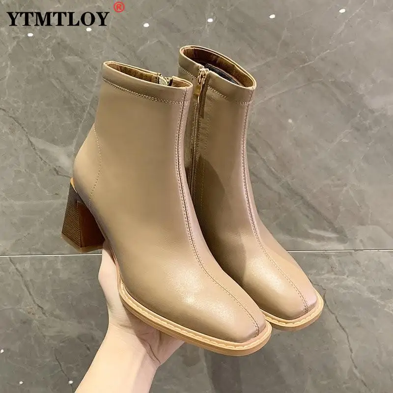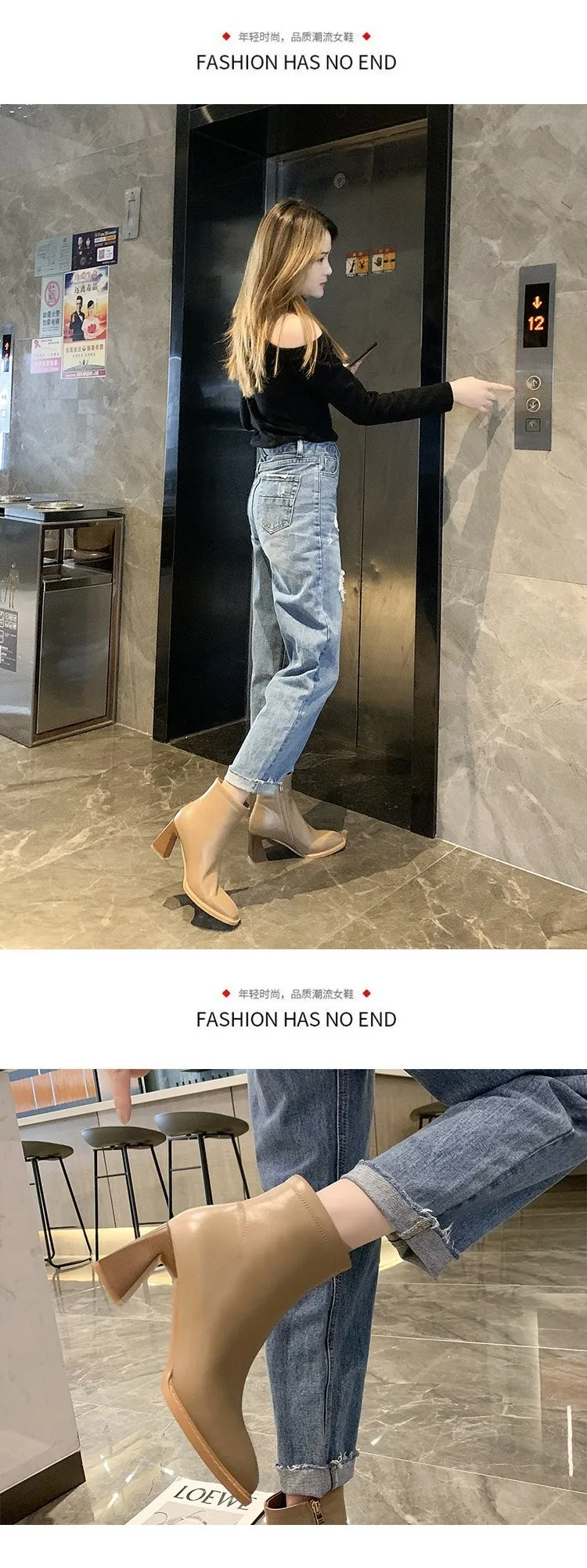 Женские ботильоны на массивном каблуке, Осенние брендовые дизайнерс...