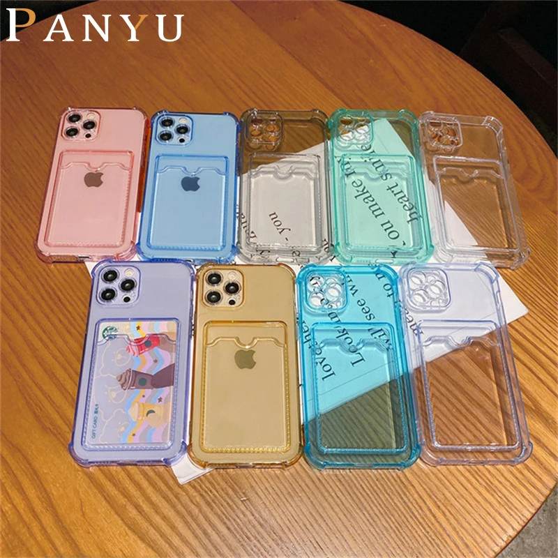 Противоударный Прозрачный чехол для телефона iPhone 12Mini 12 11 Pro Max X XS XR 7 8 Plus SE 2, мягкий силиконовый чехол-кошелек, держатель для карт