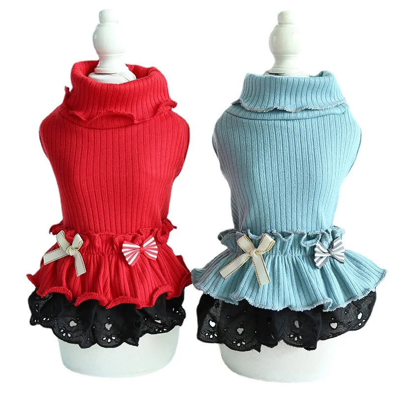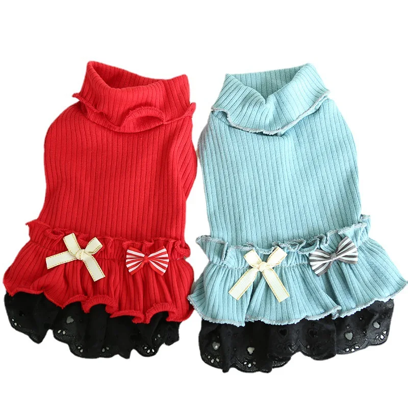 Одежда для собак с бантом, вязаная одежда для домашних питомцев, ми...