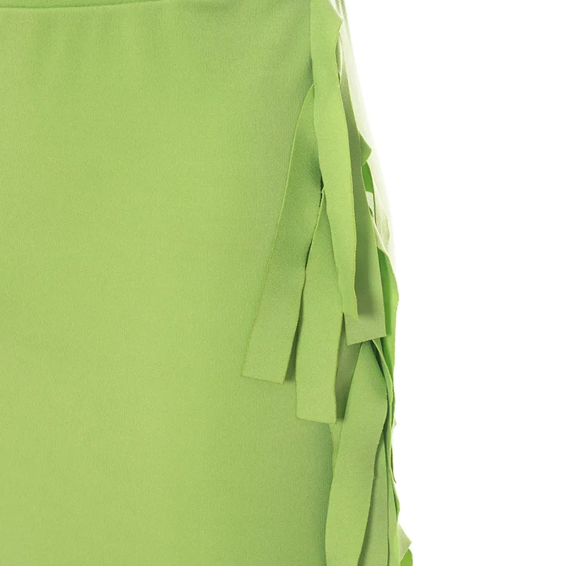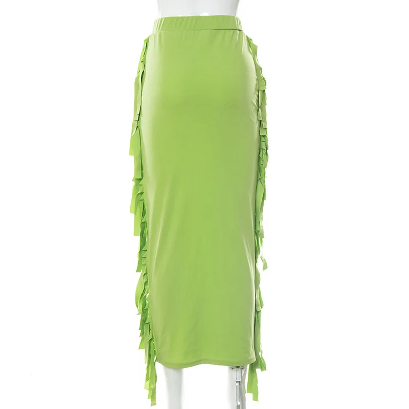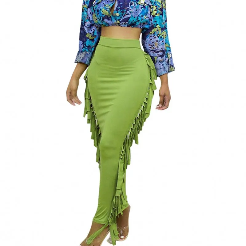 Юбка-карандаш Женская длинная, зеленая, черная, с бахромой, на осень, 2021