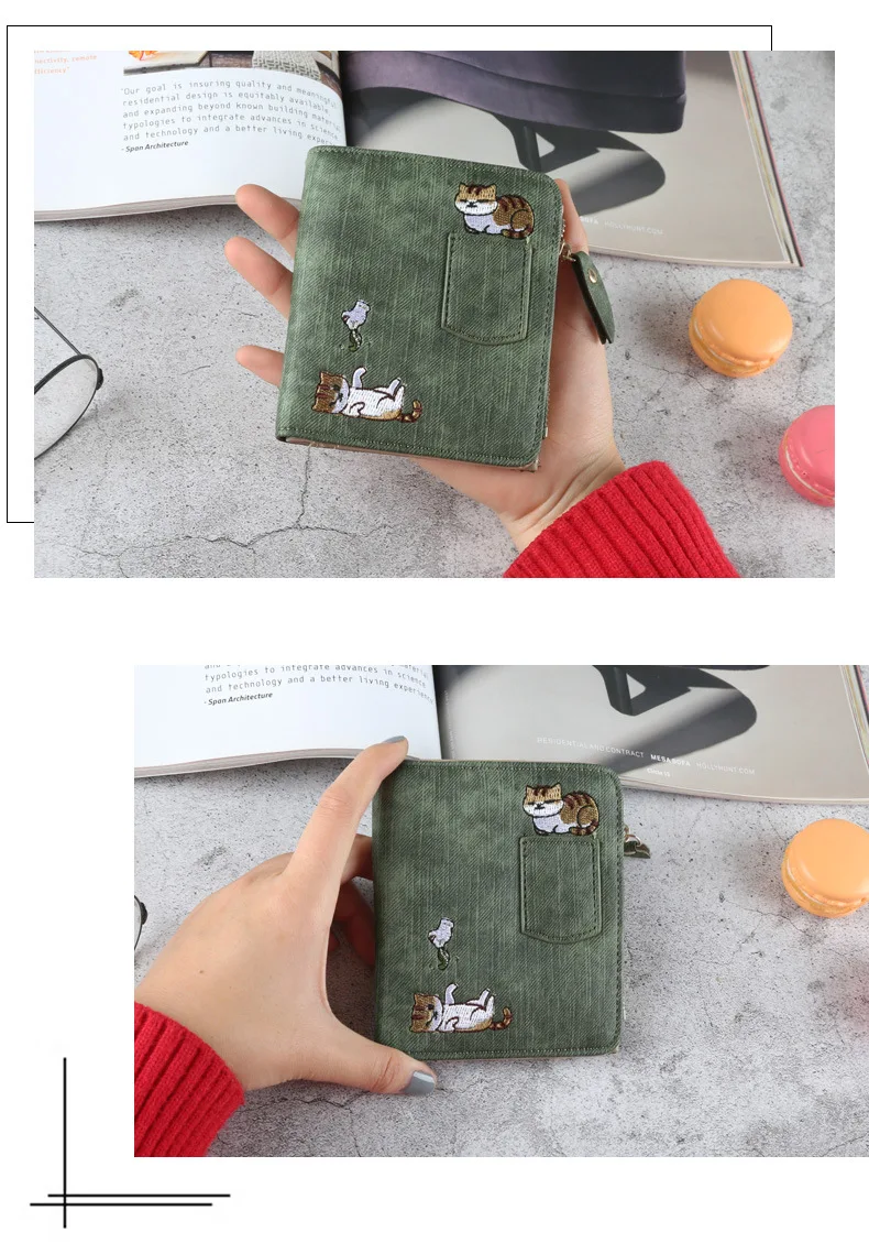 Женский короткий кошелек с вышивкой в виде кошки, 1 шт., кошелек на...