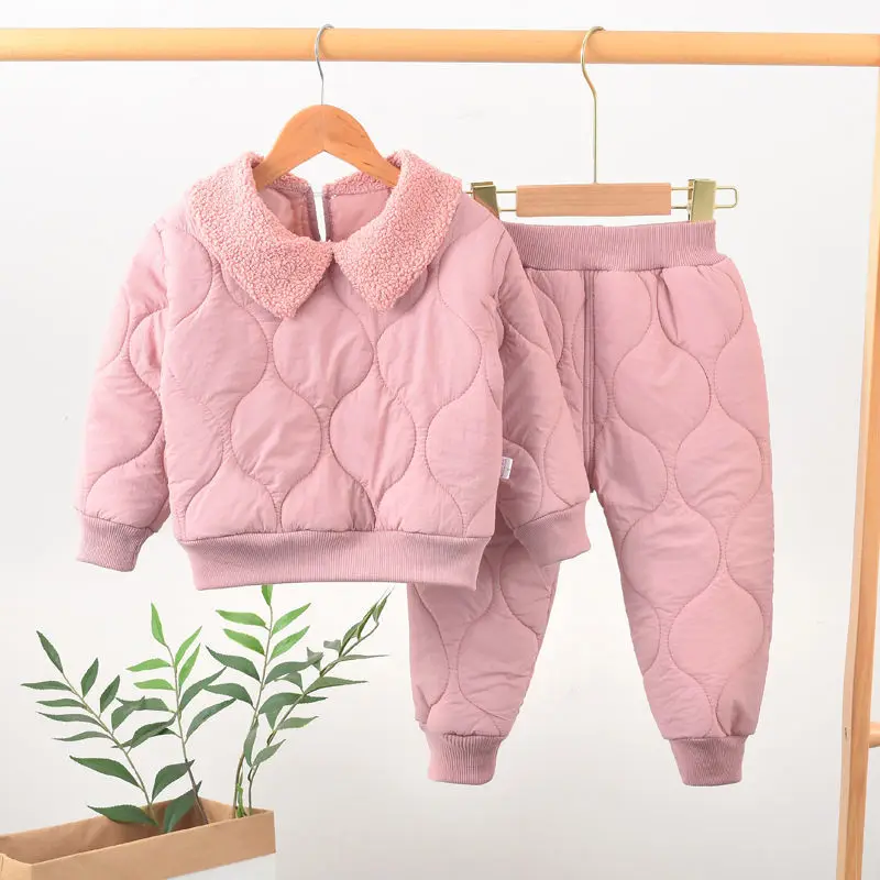 Комплект одежды для маленьких мальчиков и девочек, домашний костюм, комплект детской одежды с хлопковой подкладкой, зимний теплый однотонный топ и штаны для малышей, повседневный комплект из 2 предметов