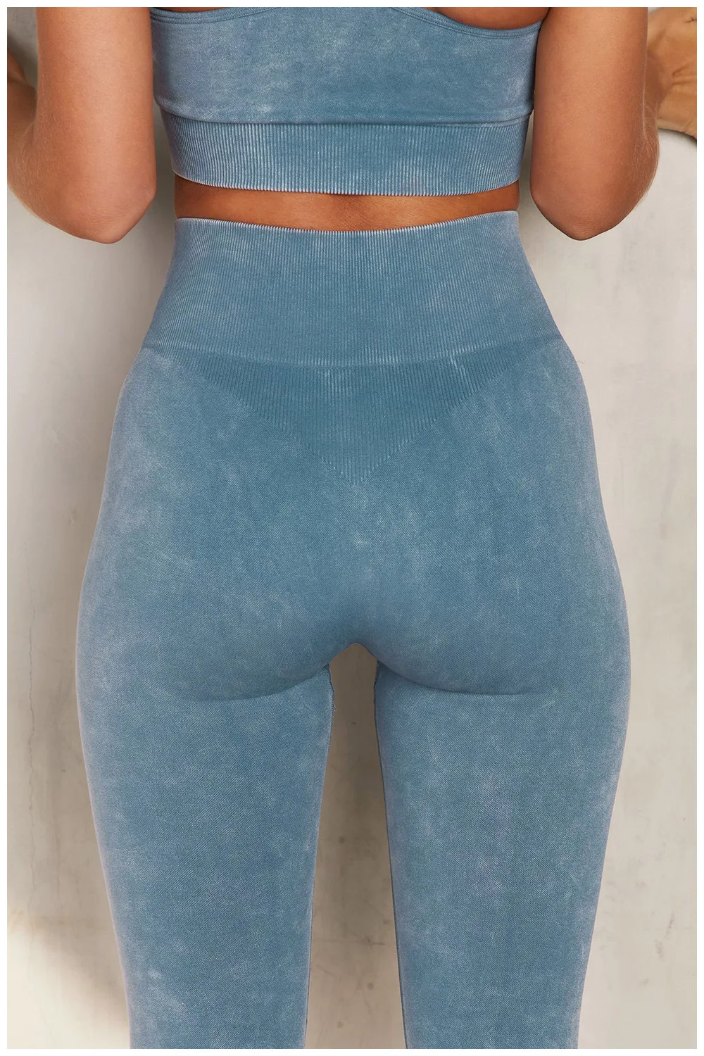 Женский бесшовный комплект для йоги из 2 предметов, имитация джинсо...