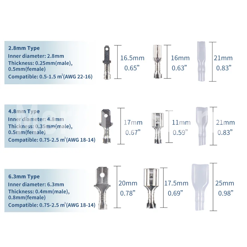 ✿ [Технические характеристики]:Материал: медь, нейлонЦвет: серебристый, белыйРазмер: 2,8 мм, 4,8 мм, 6,3 мм Длина: 190 мм/7,4 дюймовВес: 400g/13,5 oz Упаковочный лист: 720 шт Лопата быстрого соединения провода обжимной терминал Обжимной инструмент x 1 ✿ [Количество]: Штекер провода Лопата Разъем 2,8 мм x 60 штГнездовой провод Лопата Разъем 2,8 мм x 60 штИзоляционный рукав 2,8 мм x 120csШтекер провода Лопата Разъем 4,8 мм x 60 штЖенский провод Лопата Разъем 4,8 мм x 60 штИзоляционная втулка 4,8 мм x 120 шт.Штекер лепестковый разъем 6,3 мм x 60 шт.Женский провод spade коннектор 6.3мм x 60 штИзоляционная втулка 6,3 мм x 120 шт. ✿ [Информация о посылка]: Этот набор включает в себя 2,8 мм, 4,8 мм, 6,3 мм Мужской и Женский провода лопаты соединителей,Каждая для квадрокоптера с дистанционным управлением 60 шт., 2,8 мм, 1,8 мм, 6,3 мм изоляционного рукава, каждая для 120 шт, 720pcs в общей сложности.Они сортируются, упаковываются в пластиковую коробку, и различные размеры изделий помещаются отдельно, чтобы избежать путаницы.Несколько размеров и множество количеств могут удовлетворить ваши потребности в различных ситуациях. ✿ [Материал]: Обжимной терминал изготовлен из высококачественной красной меди, которая имеет чрезвычайно сильную электропроводность, также обладает хорошей стойкостью к окислению.Мягкий Нейлоновый рукав имеет хорошую изоляцию и водонепроницаемость, небольшой и светильник. ✿ [Прост в использовании]: Во-первых, поместите обжимной терминал соответствующего размера в изоляционный рукав;Затем вставьте разделенный провод в обжимной Конец и плотно прижмите его обжимными инструментами;Наконец, подключите мужские и женские разъемы. Гофрирование простое и удобное, даже новичок может легко работать. ✿ [Тонкое мастерство]: Все наши продукты производятся в соответствии со стандартом,Разъемы для проволочной лопаты яркие и красивые без заусенцев, а изоляционный рукав имеет отличную производительность герметизации.Разъемы и изоляционные рукава плотно прилегают, чтобы обеспечить безопасность и отсутствие утечки.Вы также можете вставлять или снимать терминал несколько раз, что очень удобно. ✿ [Широкий спектр применения]: Наши обжимные клеммы могут быть применены к динамикам и аудиосистемам бытовой техники, автомобилей, кораблей и быстро включать или выключать выключатели.